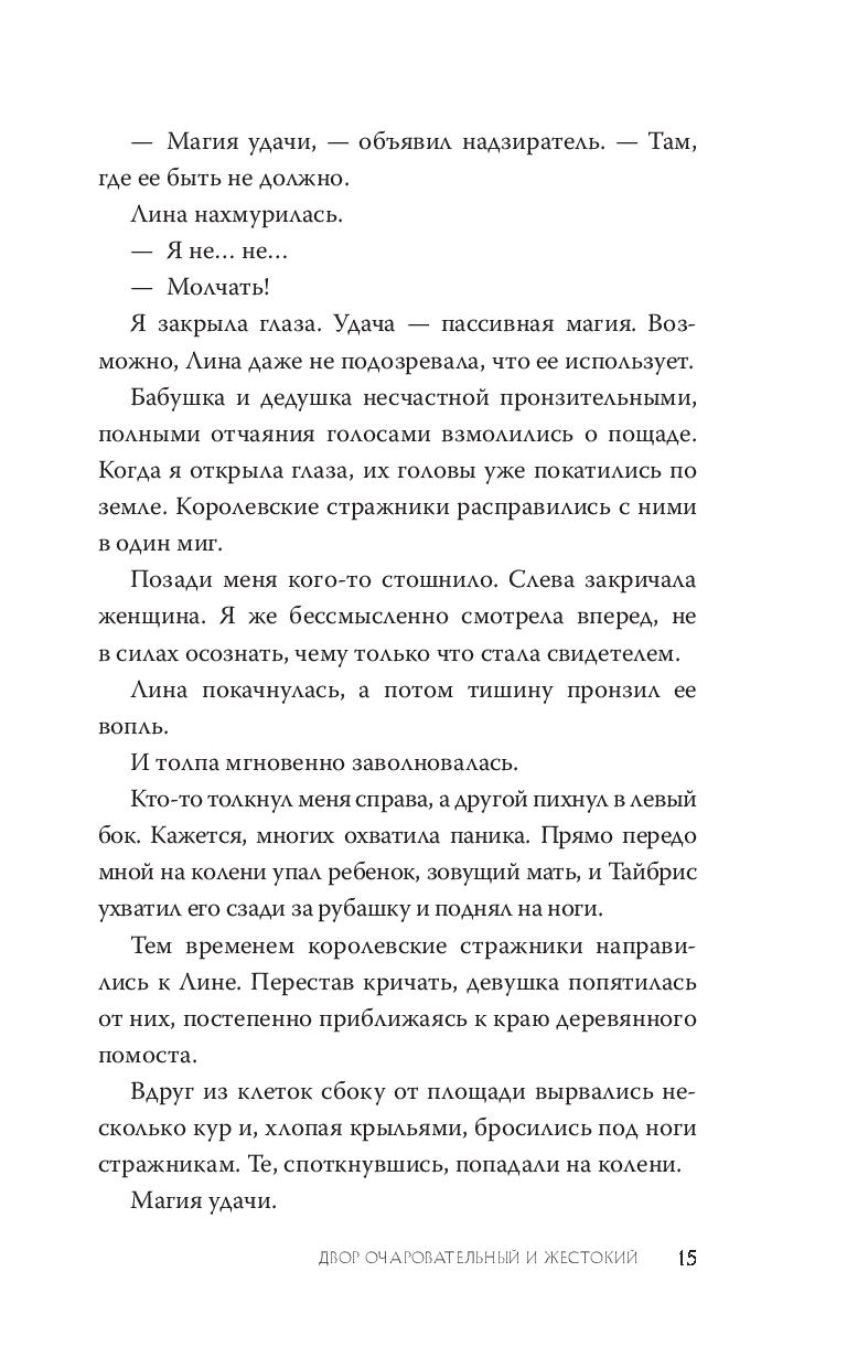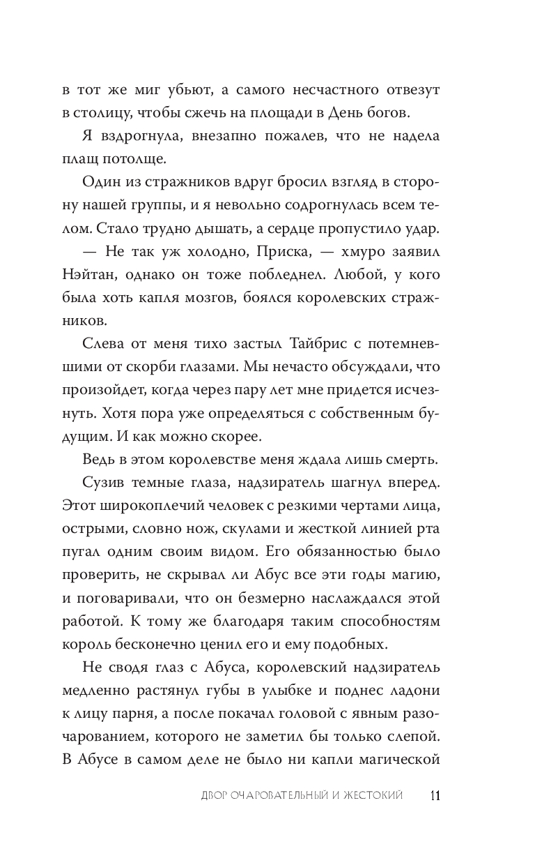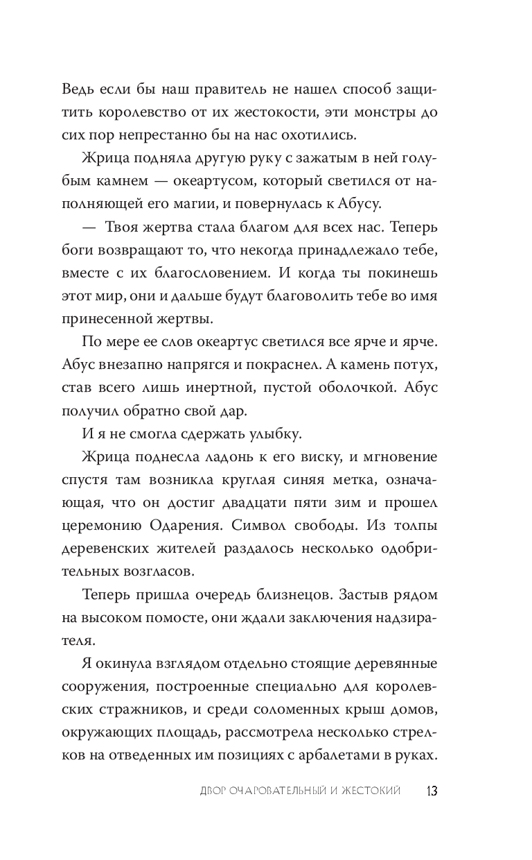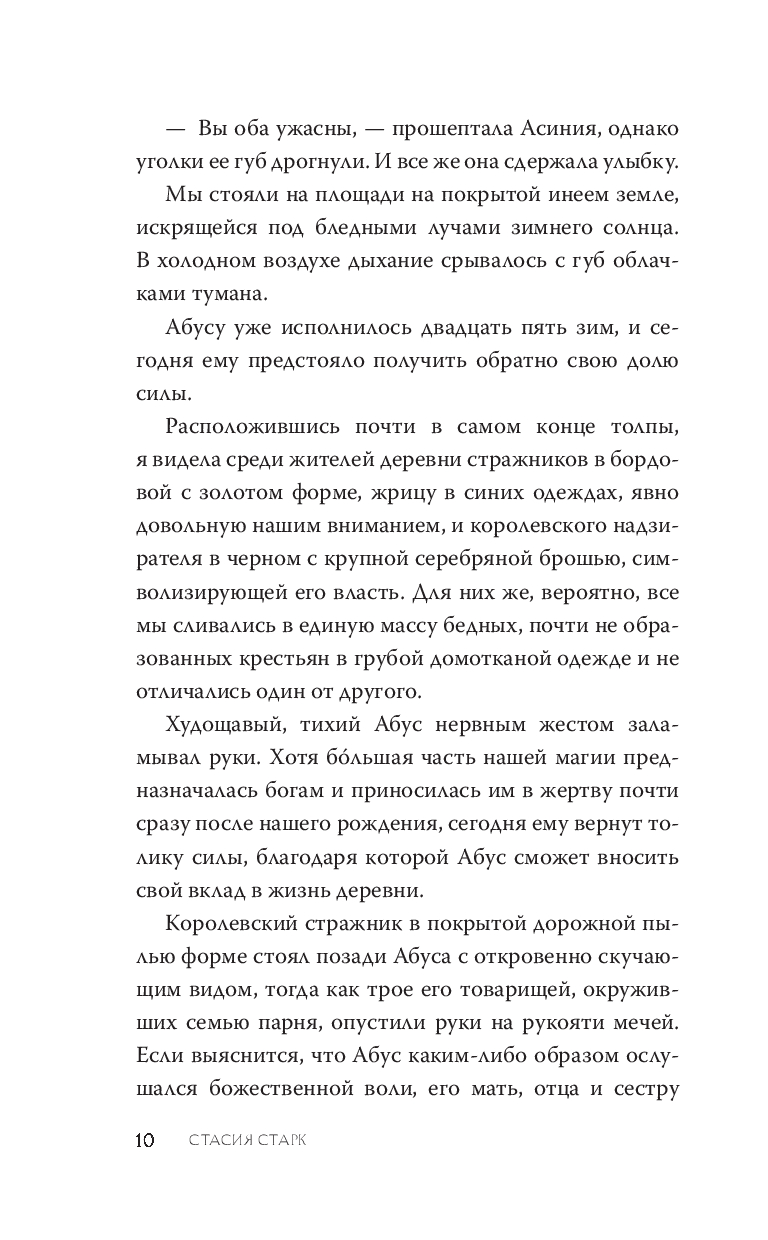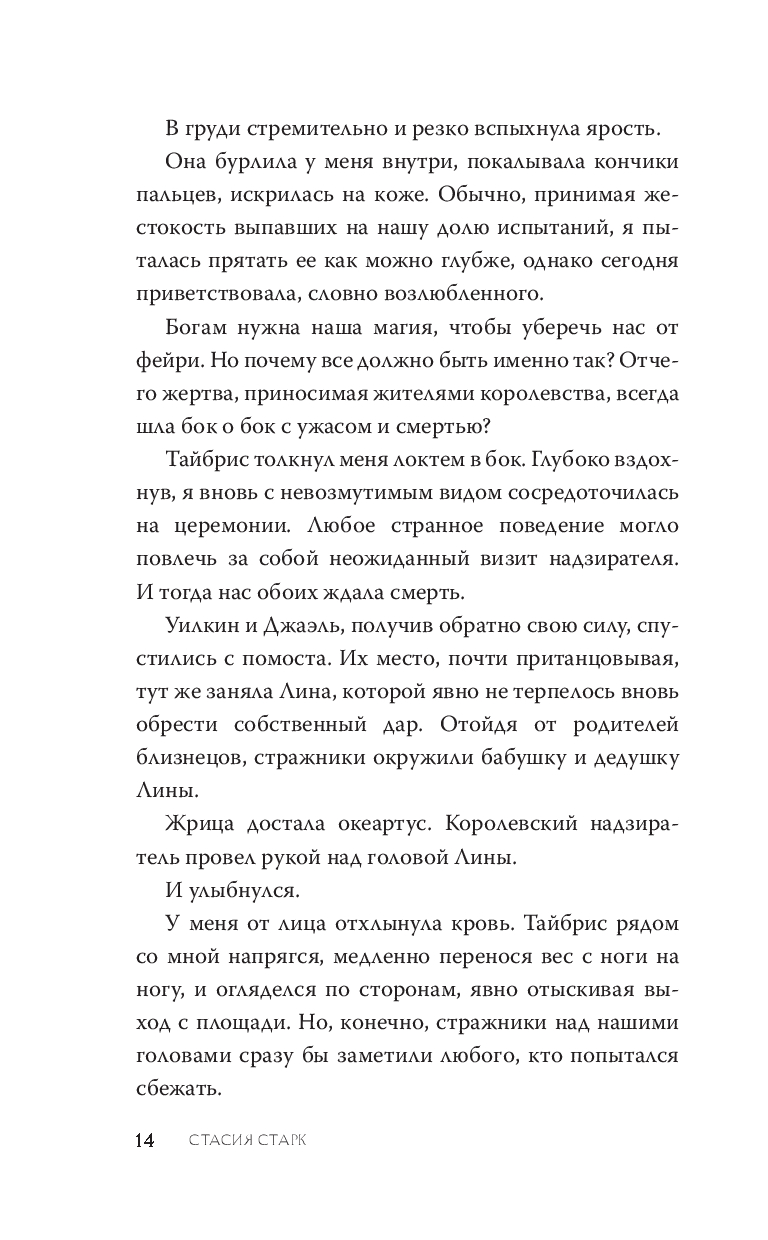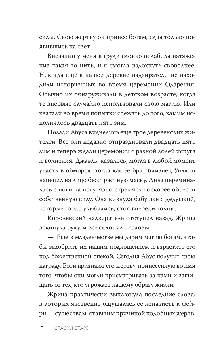 Наша магия предназначалась богам и приносилась им в жертву почти сразу после рождения. Взамен они защищали королевство от свирепых, беспощадных фейри. Людей, которым удавалось сохранить свою силу, называли испорченными, отвергнутыми богами. И велели таких сжигать.