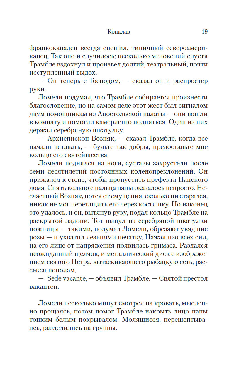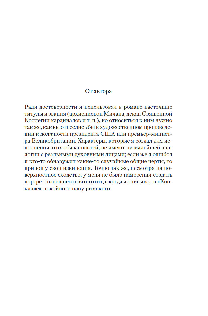Умирает папа римский, и на его место претендуют несколько кандидатов. Организовать и провести конклав по выбору нового папы поручено Якопо Ломели, декану Коллегии кардиналов. Выбор труден, не каждый из претендующих на Святой престол светел и чист душою, а некоторые из них готовы ради власти на любое злодейство. К тому же выясняется, что и прежний папа был далеко не ангел...
