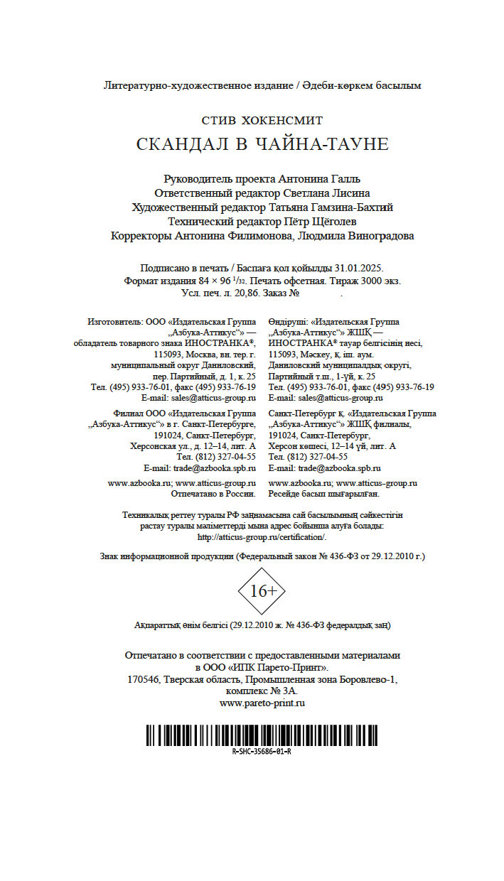 | Изготовитель | ООО "Издательство "Иностранка". 109017, РФ, г. Москва, ул. Пятницкая, 41 |