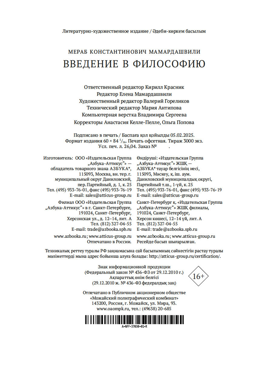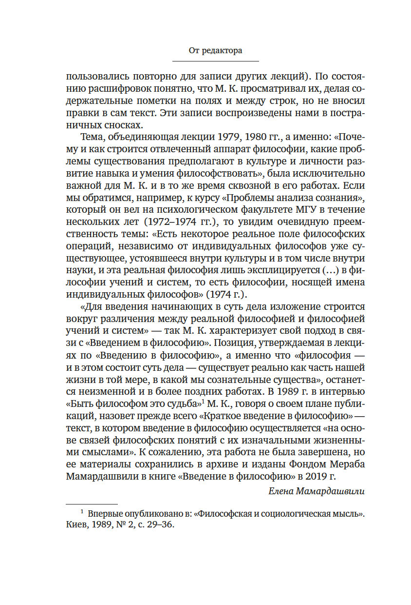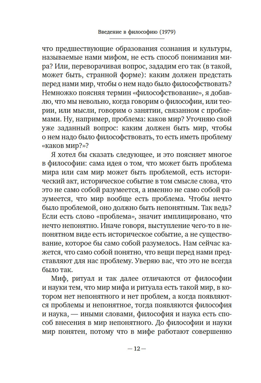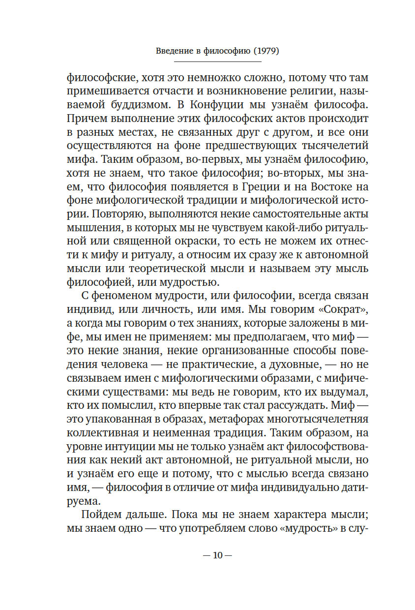 Мераб Константинович Мамардашвили (1930-1990) – один из наиболее значительных мыслителей второй половины ХХ века. В настоящее издание вошли два курса лекций, прочитанных М. К. Мамардашвили во ВГИКе в 1979-1980 годах под общим названием "Введение в философию". Из всего наследия автора эти лекции являются наиболее доступными и понятными широкому кругу читателей. В книге анализируются природа, характер и цели философского мышления. На примерах, приводимых из истории философии, показывается, почему и как строится отвлеченный аппарат философского рассуждения и языка, какие проблемы существования предполагают в человеческих культурах и личности развитие навыка и умения философствовать, в чем заключается различие между реальной философией и философией учений и систем.