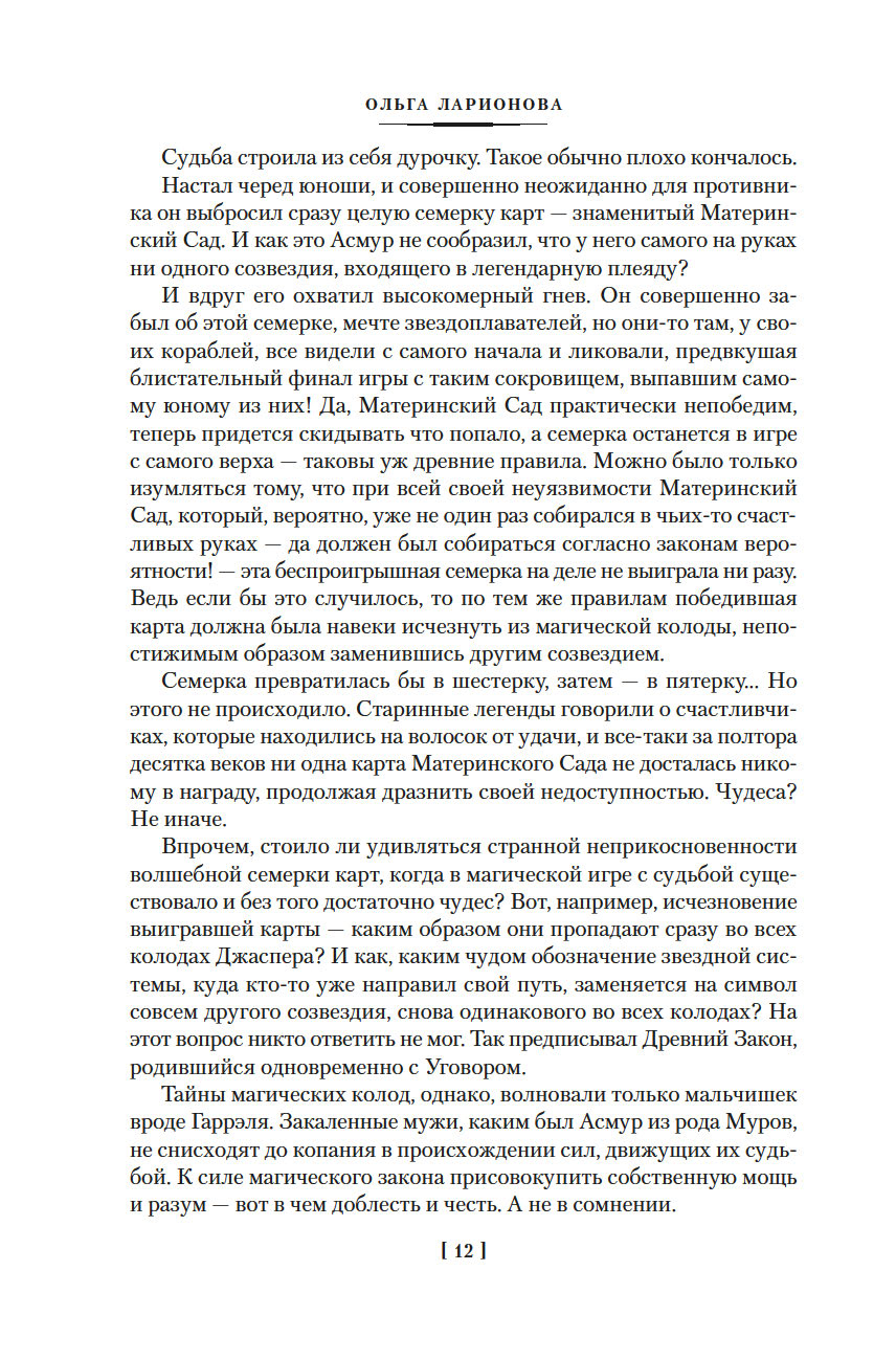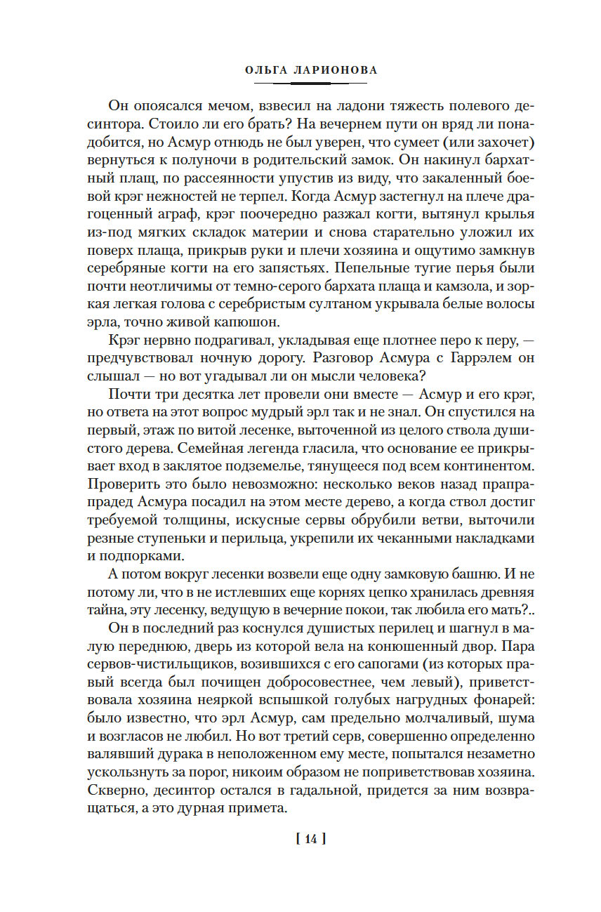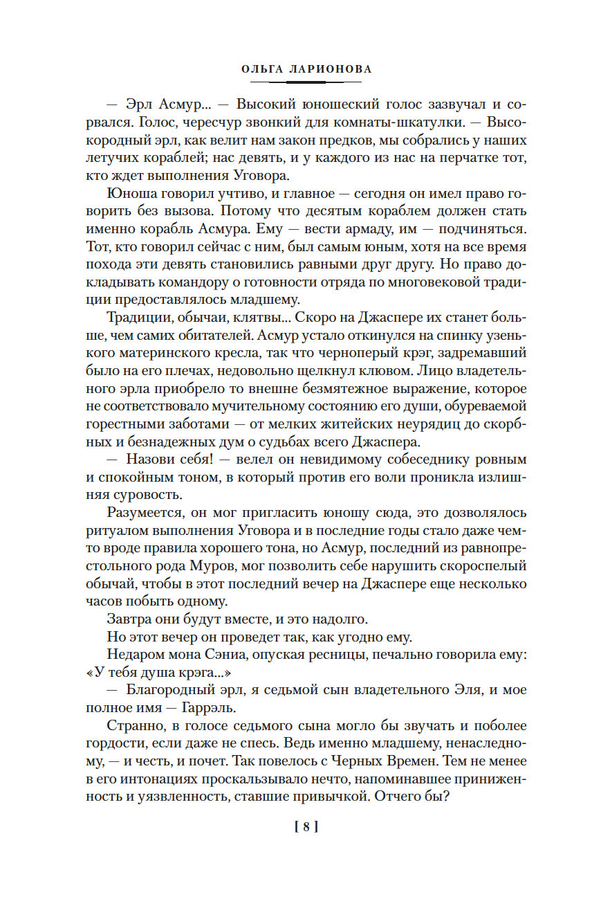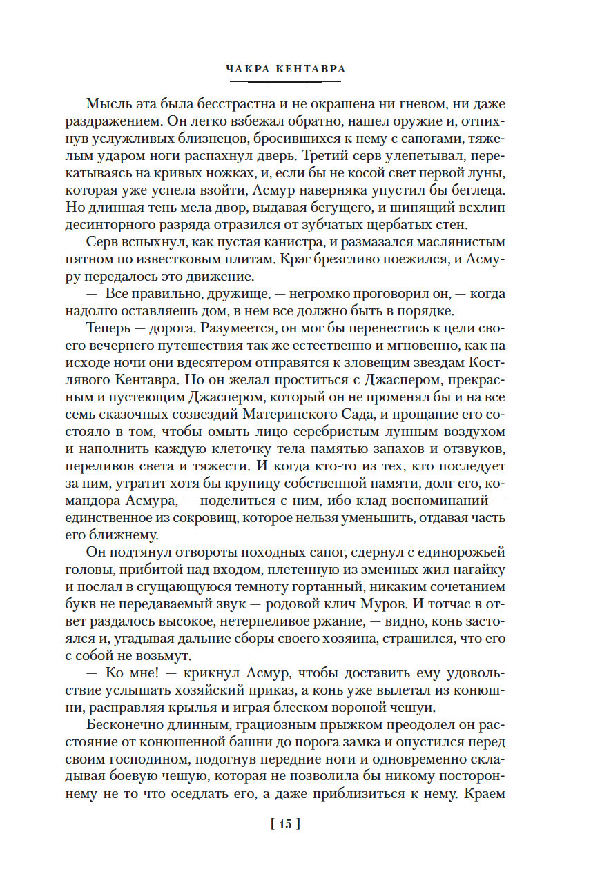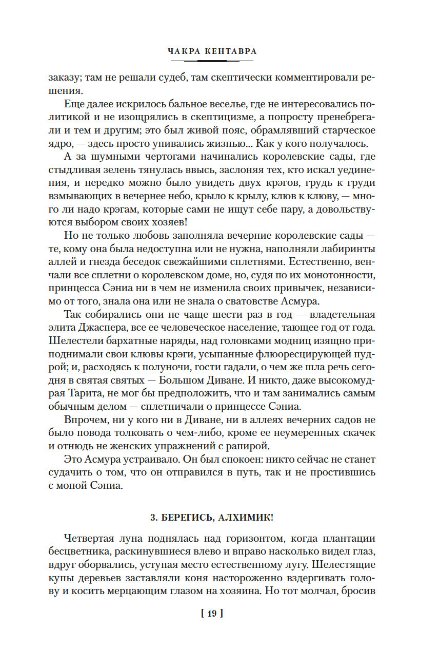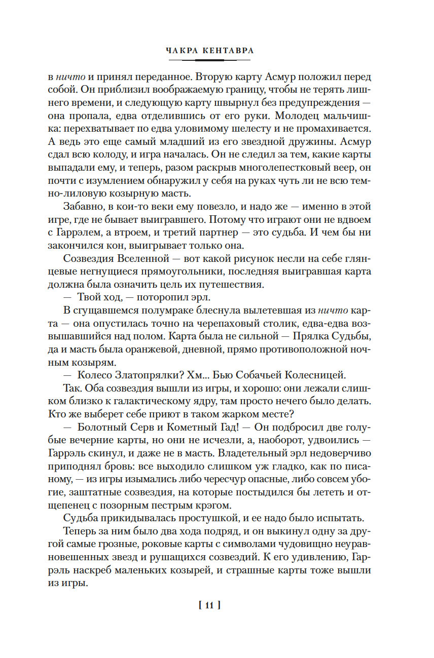 Цикл "Венценосный крэг", начатый повестью "Чакра Кентавра", писался долго, около двадцати лет. Повесть, задуманная как шутка, вылилась в полноценную "космооперу" – своего рода наш достойный ответ "звездному королю" Гамильтону. Путешествия во Вселенной в повестях и романах цикла сочетаются с романтической сказкой, где есть и рыцарские турниры, и роботы, и фантастические летучие существа – крэги, глазами которых люди видят окружающий мир. Но главное, историям, рассказанным в книгах цикла, присуща та особая человечность, выделяющая творчество Ларионовой среди большинства коллег.