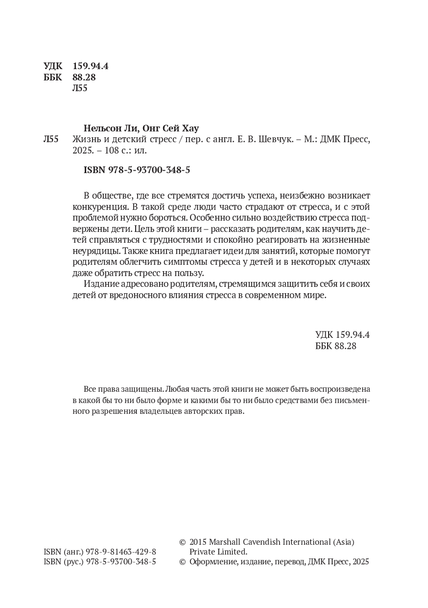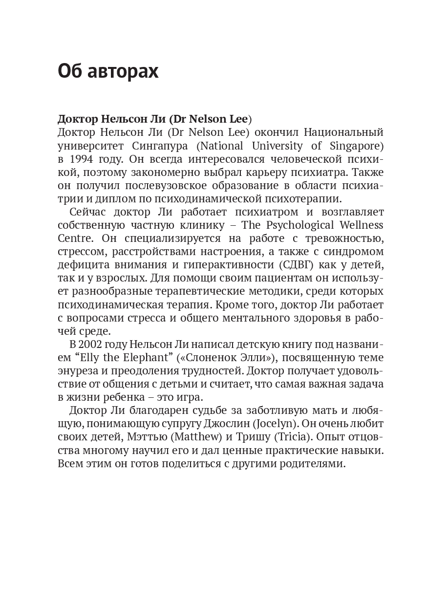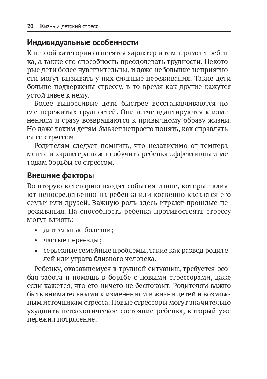 Автор рассказывает о том, как научить детей самостоятельно справляться с трудностями, взвешенно реагировать на жизненные неурядицы и даже извлекать из стресса пользу. В книге представлены советы и рекомендации, которые помогут родителям поддерживать физическое и ментальное здоровье детей.