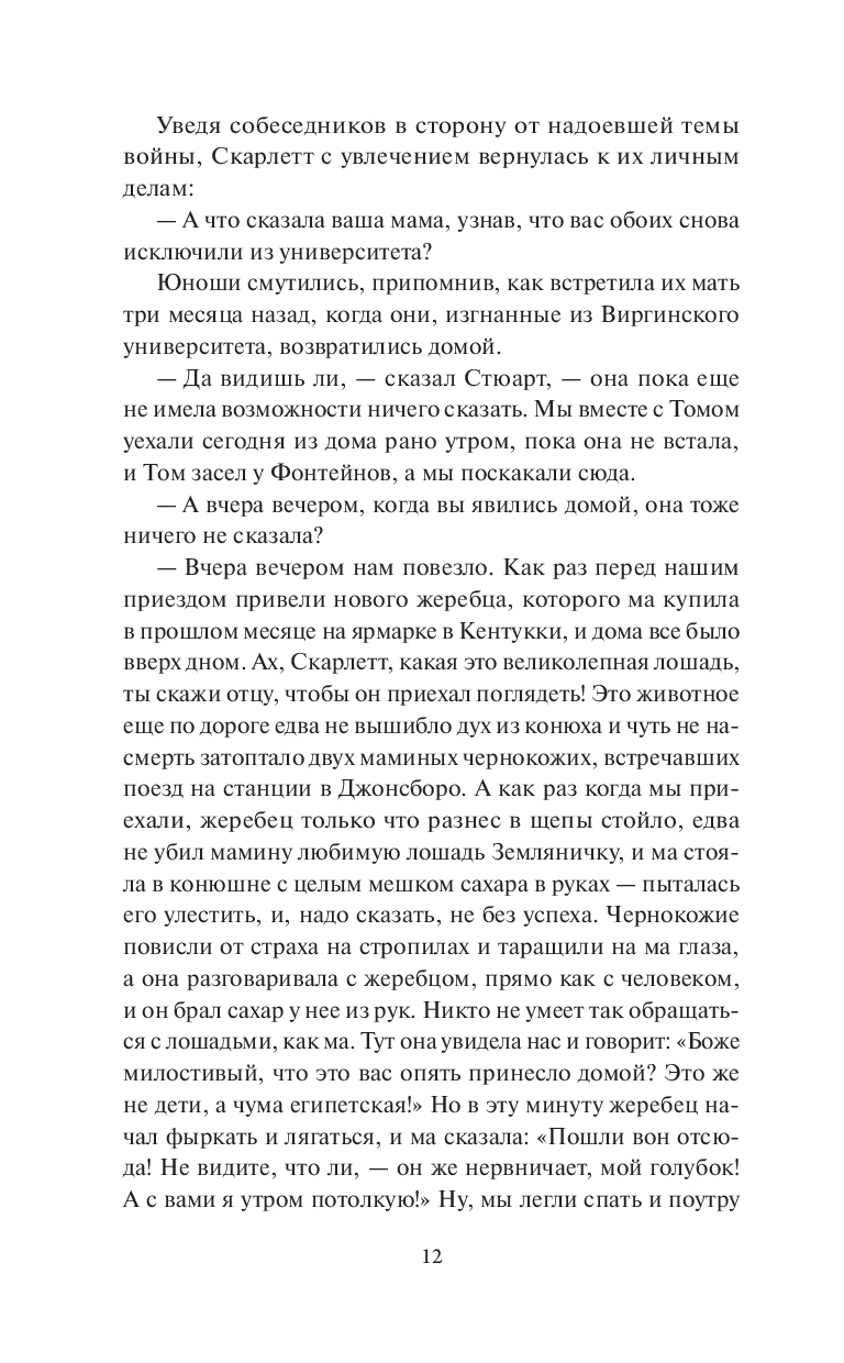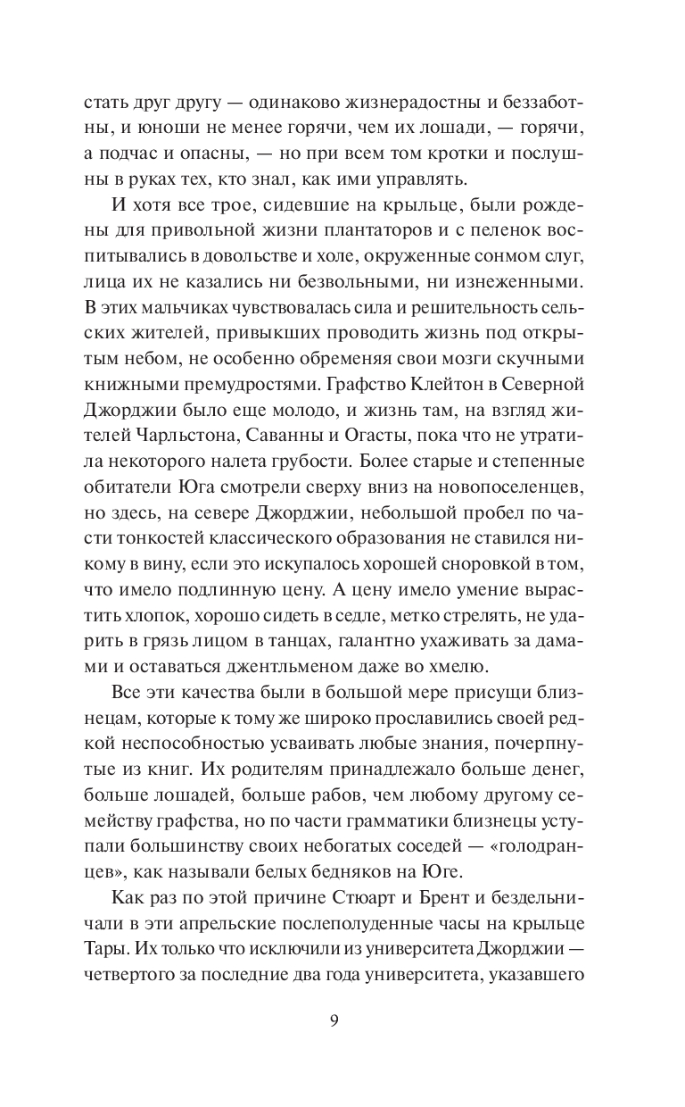 Ее героиня, юная Скарлетт О'Хара, умна, красива и своенравна. Дочь состоятельного землевладельца, она привыкла получать все, что захочет. И поэтому твердо намерена разрушить помолвку Эшли Уилкса, соседского сына, в которого давно влюблена. Но очень скоро жизнь тех, кого она любит, – и ее собственная – бесповоротно изменится: на порог приходит война.