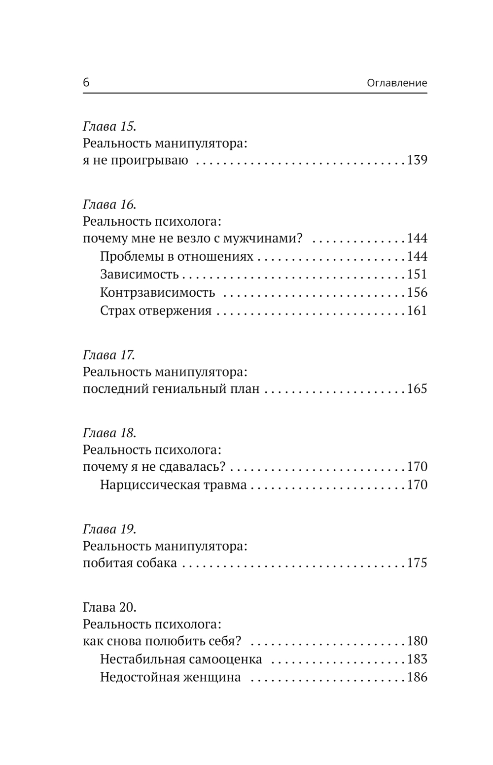 Манипуляции в отношениях – то, что происходит с нами каждый день. Не все готовы мириться с реальностью, отказываться от иллюзий и отпускать прошлое. Эта книга – ваша пилюля от травмы расставания. Порой горькая, но приводящая в чувство.