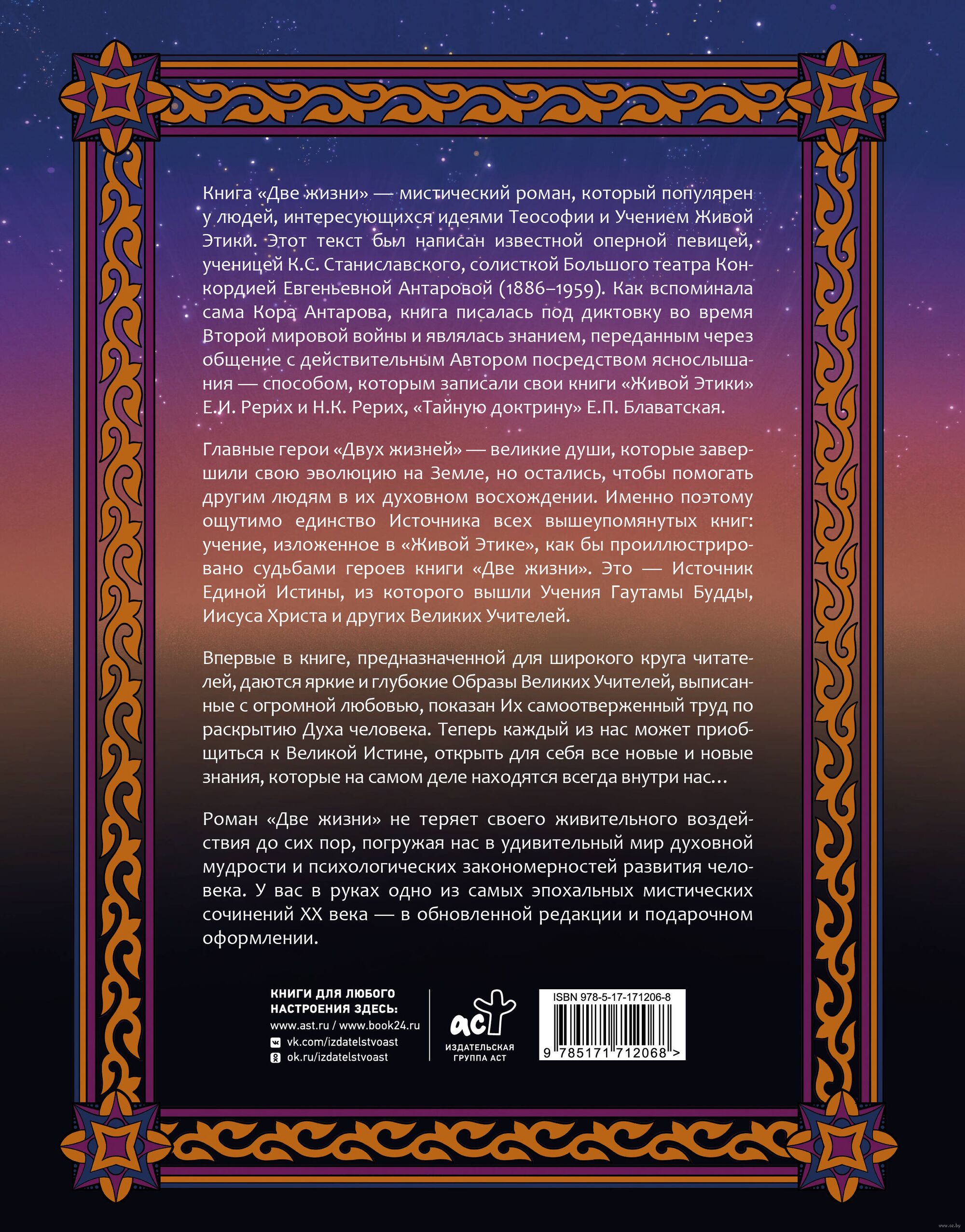 Роман "Две жизни" не теряет своего живительного воздействия до сих пор, погружая нас в удивительный мир духовной мудрости и психологических закономерностей развития человека. У вас в руках одно из самых эпохальных мистических сочинений XX века – в обновленной редакции и подарочном оформлении.