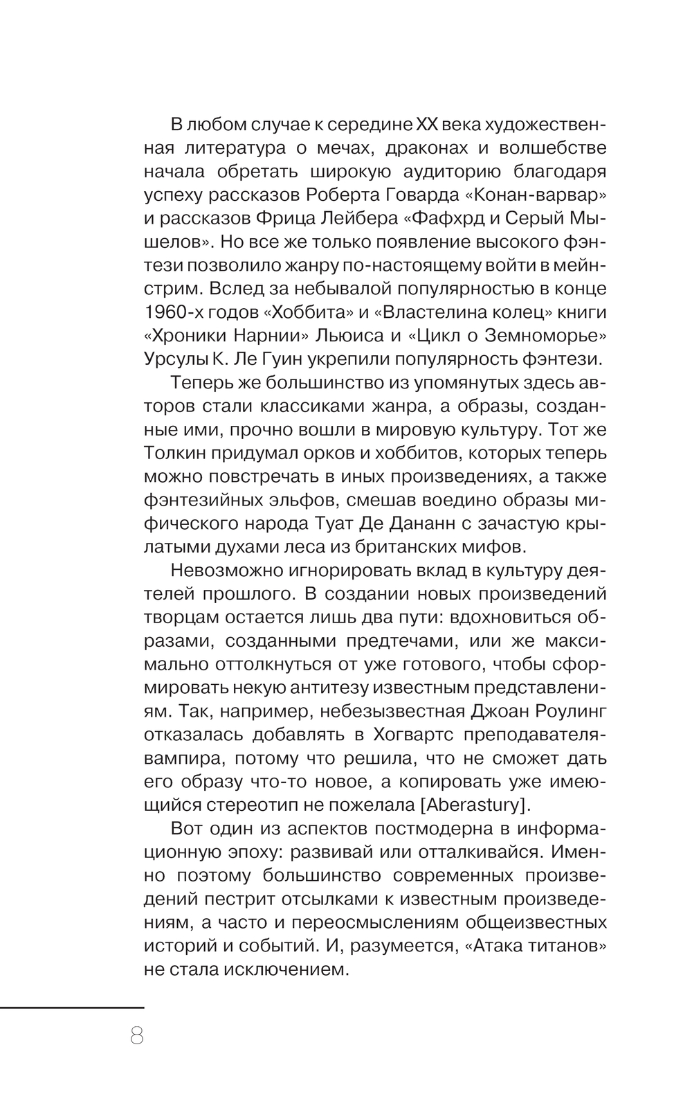 Автор книги изучил каждую из этих тем, предлагая читателю уникальный взгляд на события и персонажей, которые стали символом целого поколения. Приготовьтесь погрузиться в новые смыслы, которые открываются лишь тем, кто готов заглянуть глубже. Все, что вы хотели узнать об аниме и манге "Атака титанов", собрано в одном месте – в этой увлекательной книге.