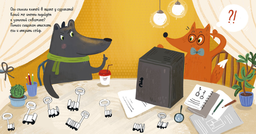 "Дело о пропавшем бриллианте. Интерактивный детектив" Лиды Даниловой позволит юному читателю почувствовать себя настоящим сыщиком. Вместе с детективами Волковым и Лисичкиным малыш будет изучать улики с места преступления, анализировать показания свидетелей, проходить лабиринты и искать подсказки. И конечно же, ответит на главный вопрос: кто украл бриллиант у суриката?
