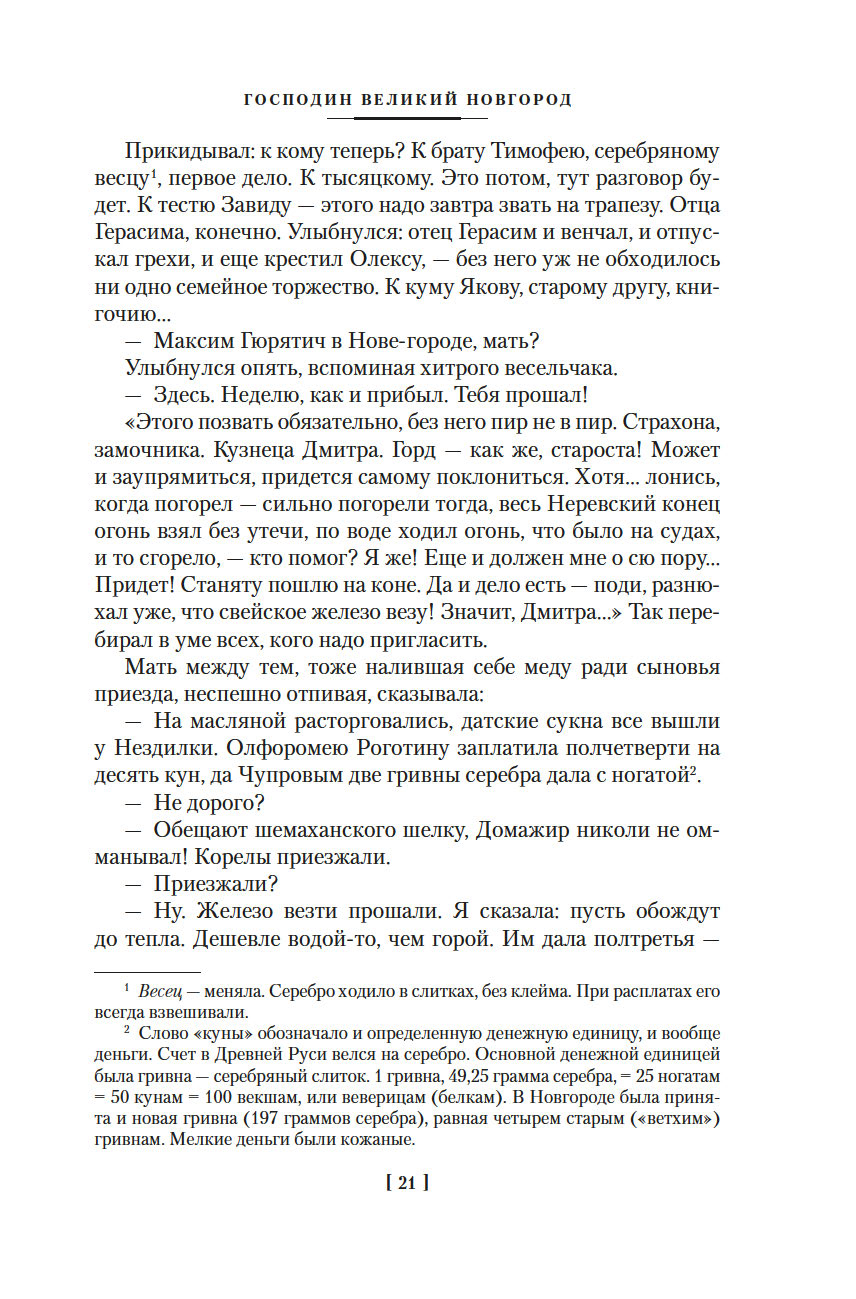 В настоящий сборник вошли оба произведения "новгородского цикла". Повесть "Господин Великий Новгород" посвящена героической эпохе Новгородской республики и повествует о походе в Ливонию 1268 года и грандиозной победе в битве при Раковоре. Действие романа "Марфа-посадница" переносит читателя в 1471-1478 годы, в гущу конфликта между Новгородской республикой и Великим княжеством Московским, закончившегося гибелью вечевого строя...