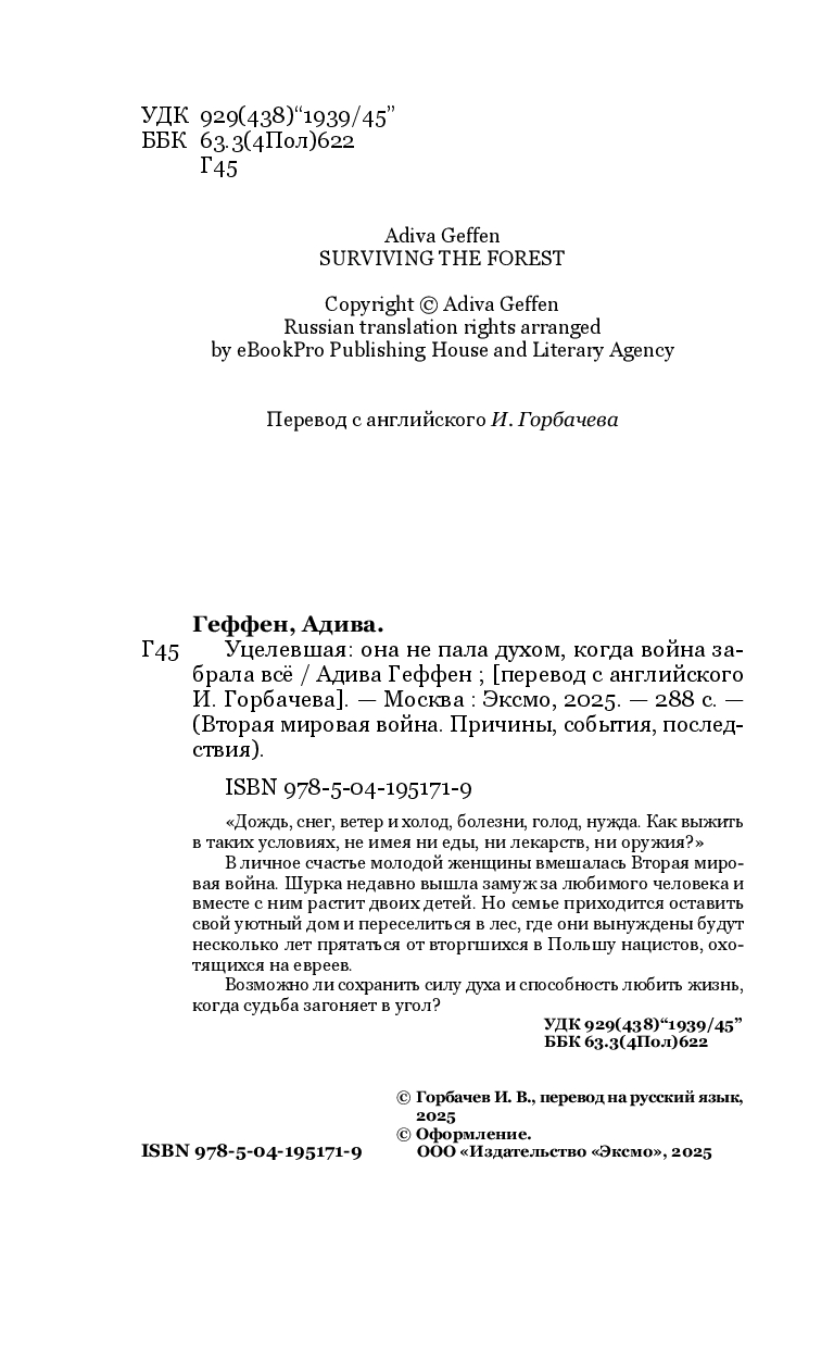 | Название в оригинале | Surviving The Forest: A WW2 Historical Novel, Based on a True Story of a Jewish Holocaust Survivor |