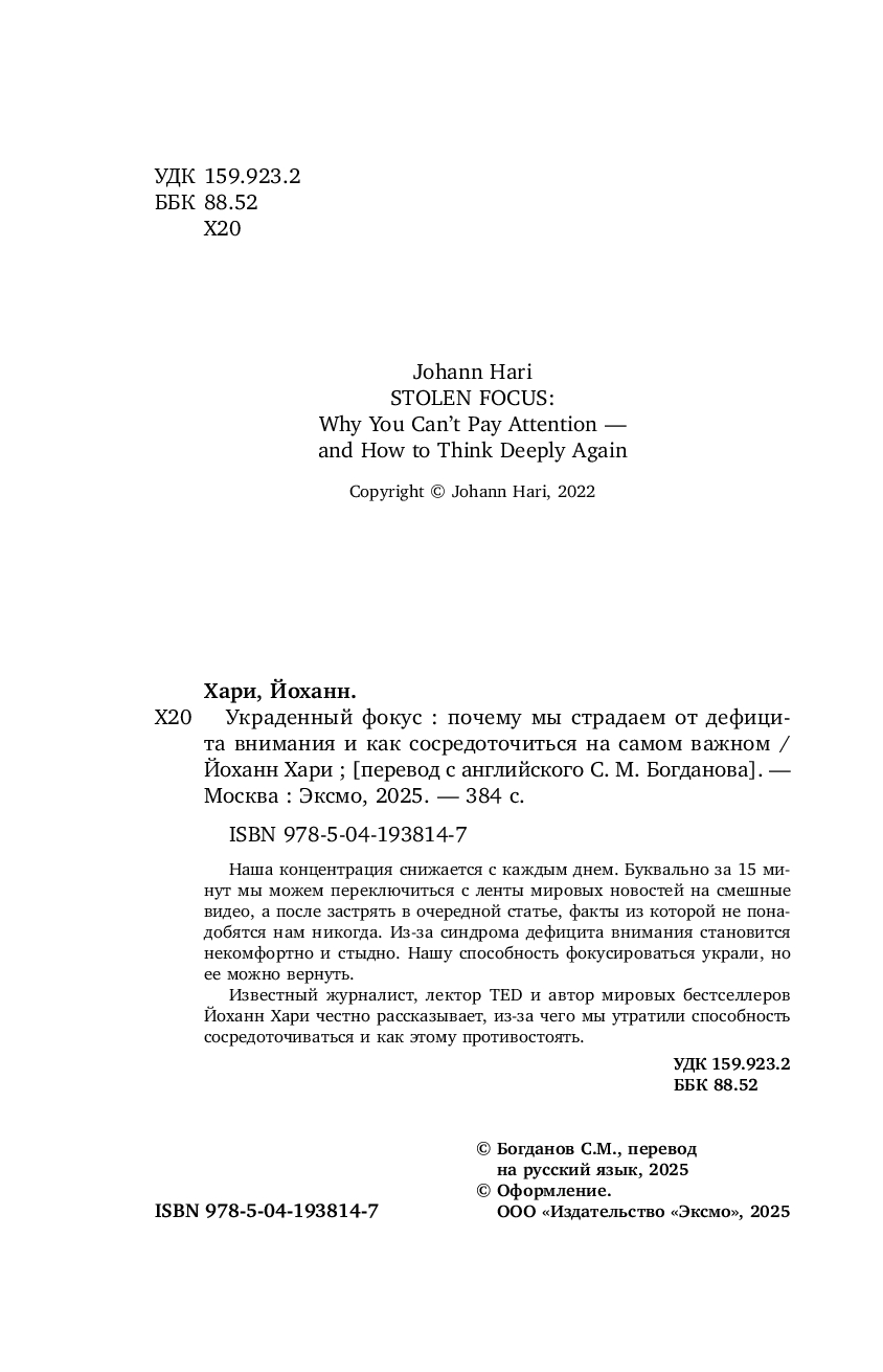 Украденный фокус. Почему мы страдаем от дефицита внимания и как сосредоточиться на самом важном