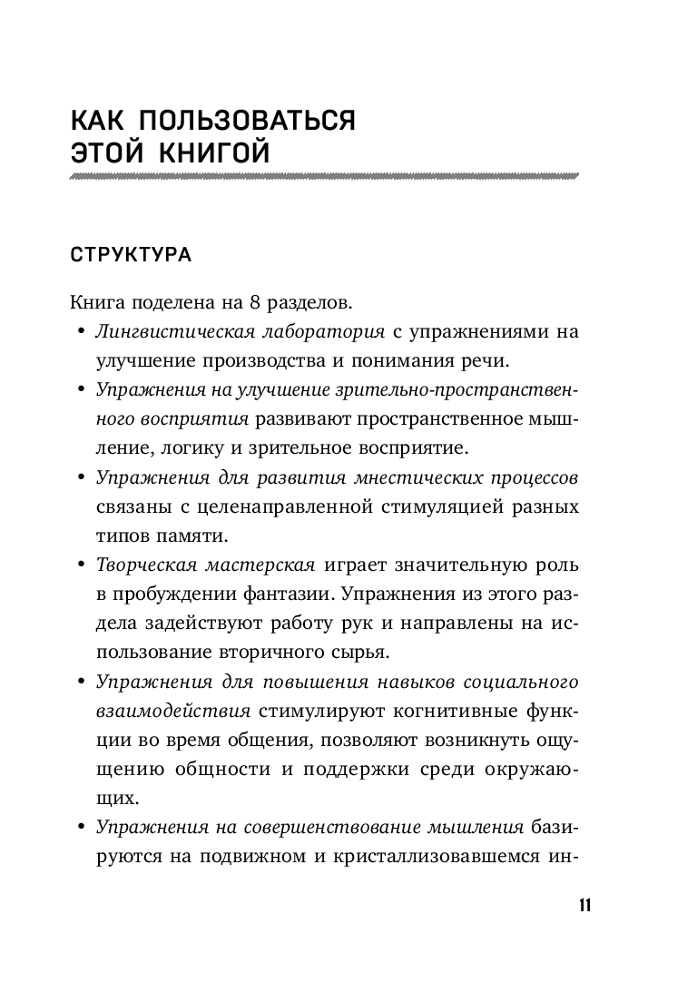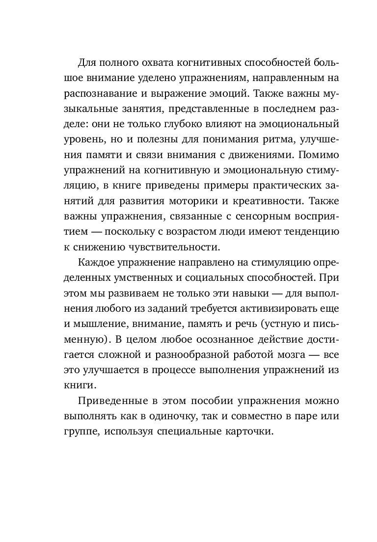 Поддерживать активность и здоровье мозга важно всем, не только пожилым людям. Эта книга помогает тренировать когнитивные навыки: память, внимание, мышление, речь. Они, как правило, с возрастом страдают первыми.