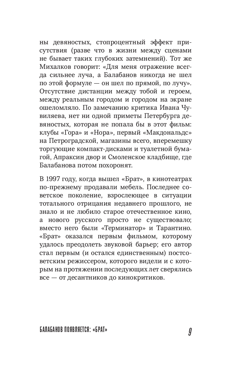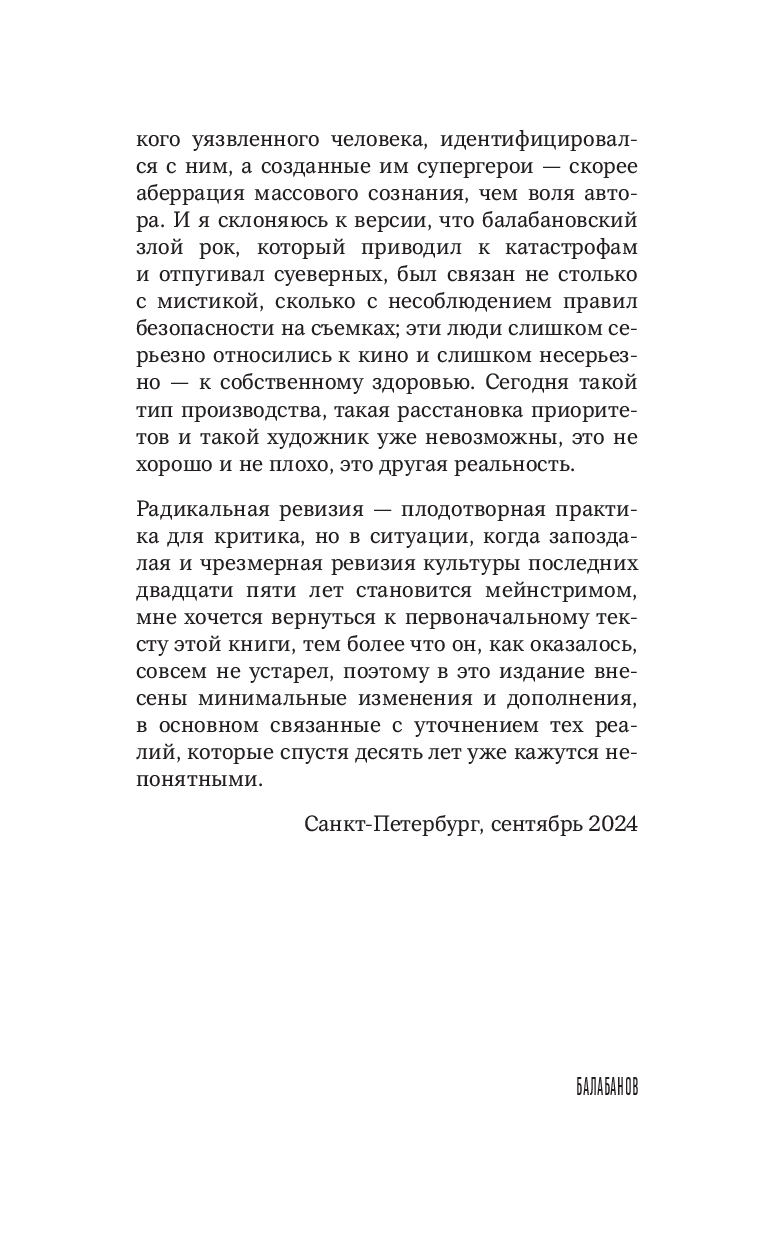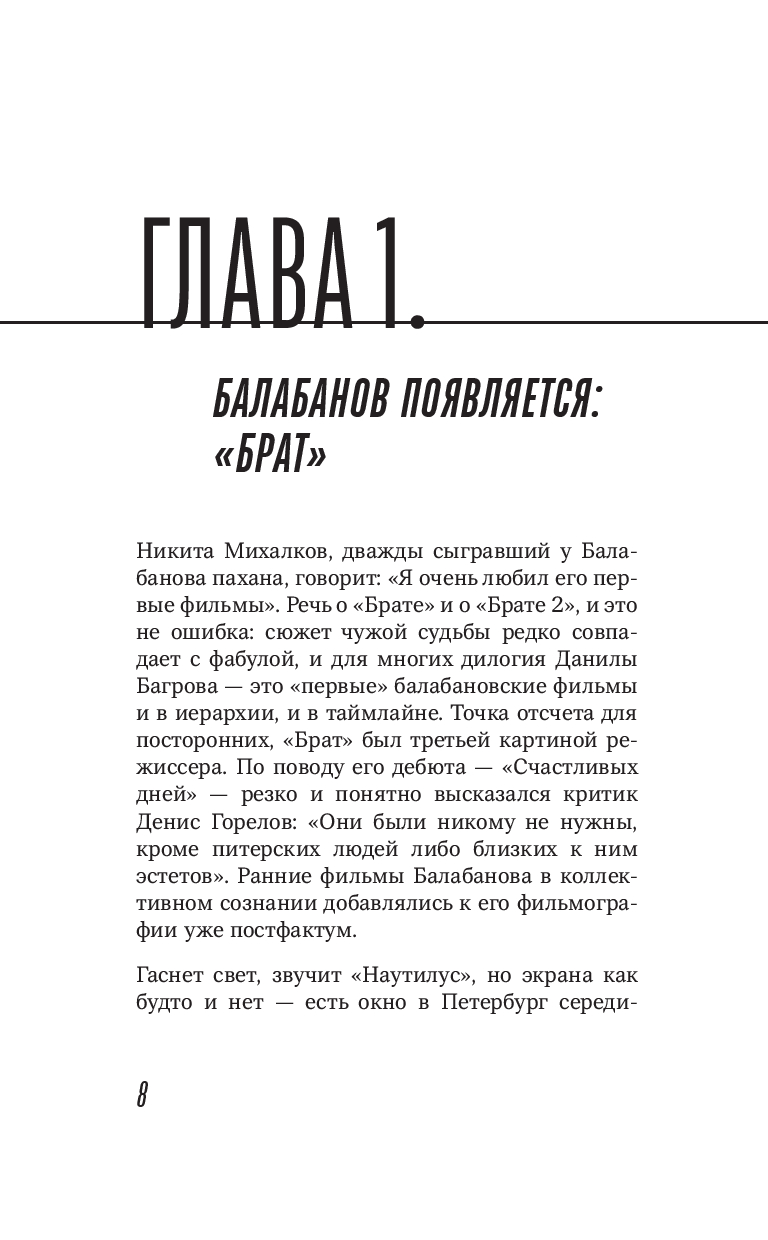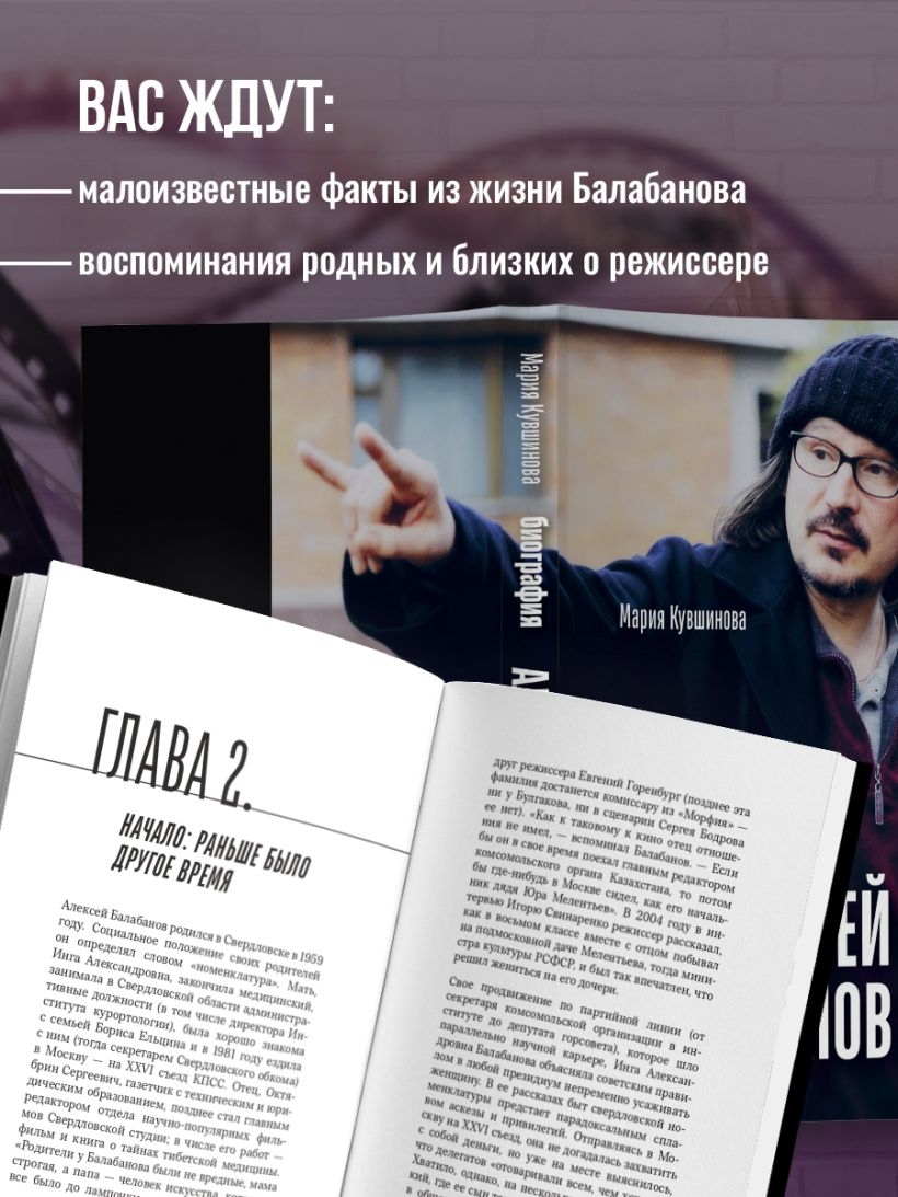 Обновленное издание книги Марии Кувшиновой о режиссере Алексее Балабанове. В основу книги легли разговоры с близкими режиссера – мамой Ингой Александровной Балабановой, его школьным другом Евгением Горенбургом, продюсером Сергеем Сельяновым, женой и художником по костюмам Надеждой Васильевой, Никитой Михалковым и др.