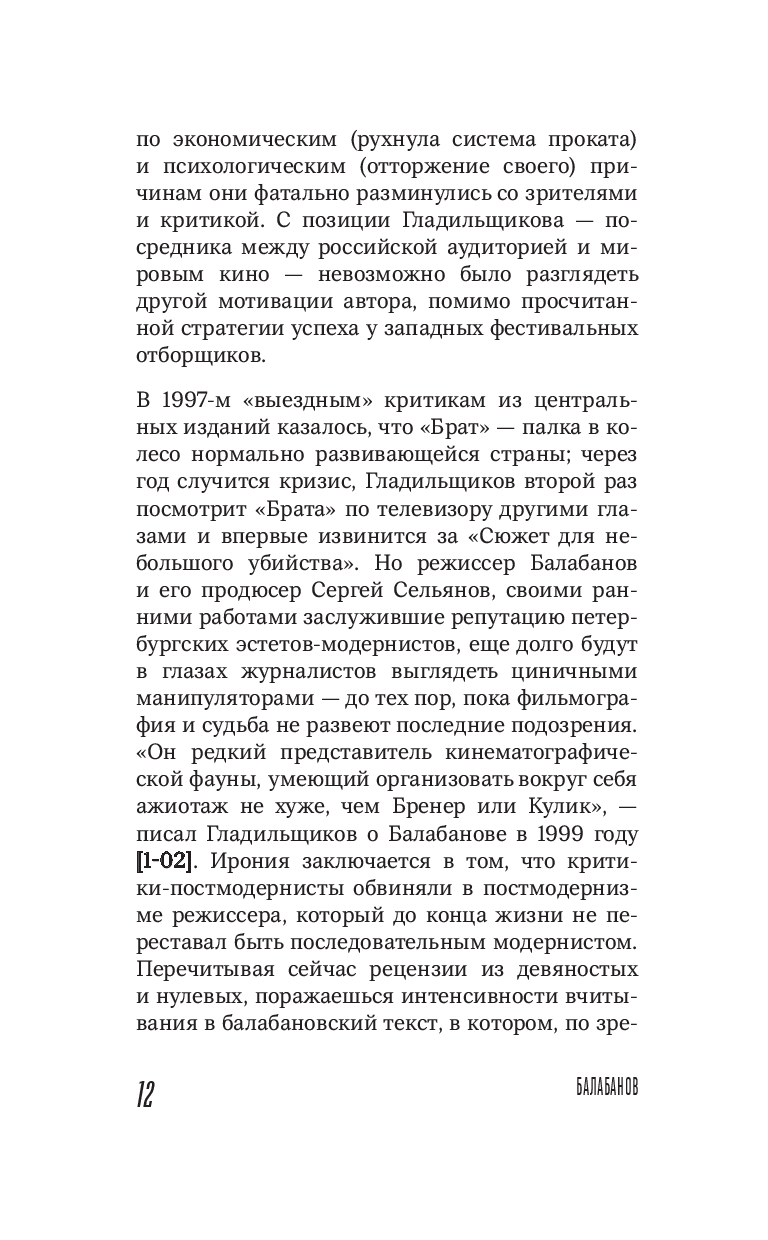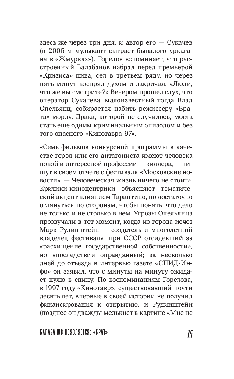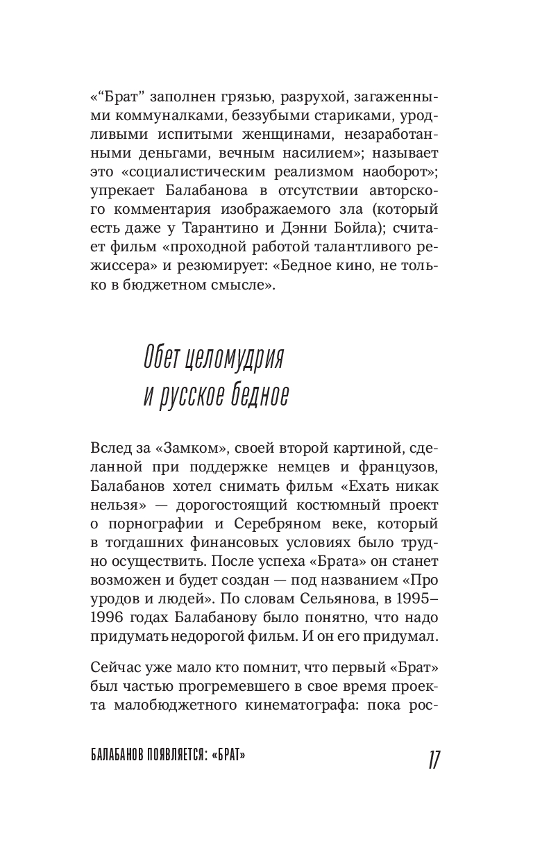 Обновленное издание книги Марии Кувшиновой о режиссере Алексее Балабанове. В основу книги легли разговоры с близкими режиссера – мамой Ингой Александровной Балабановой, его школьным другом Евгением Горенбургом, продюсером Сергеем Сельяновым, женой и художником по костюмам Надеждой Васильевой, Никитой Михалковым и др.