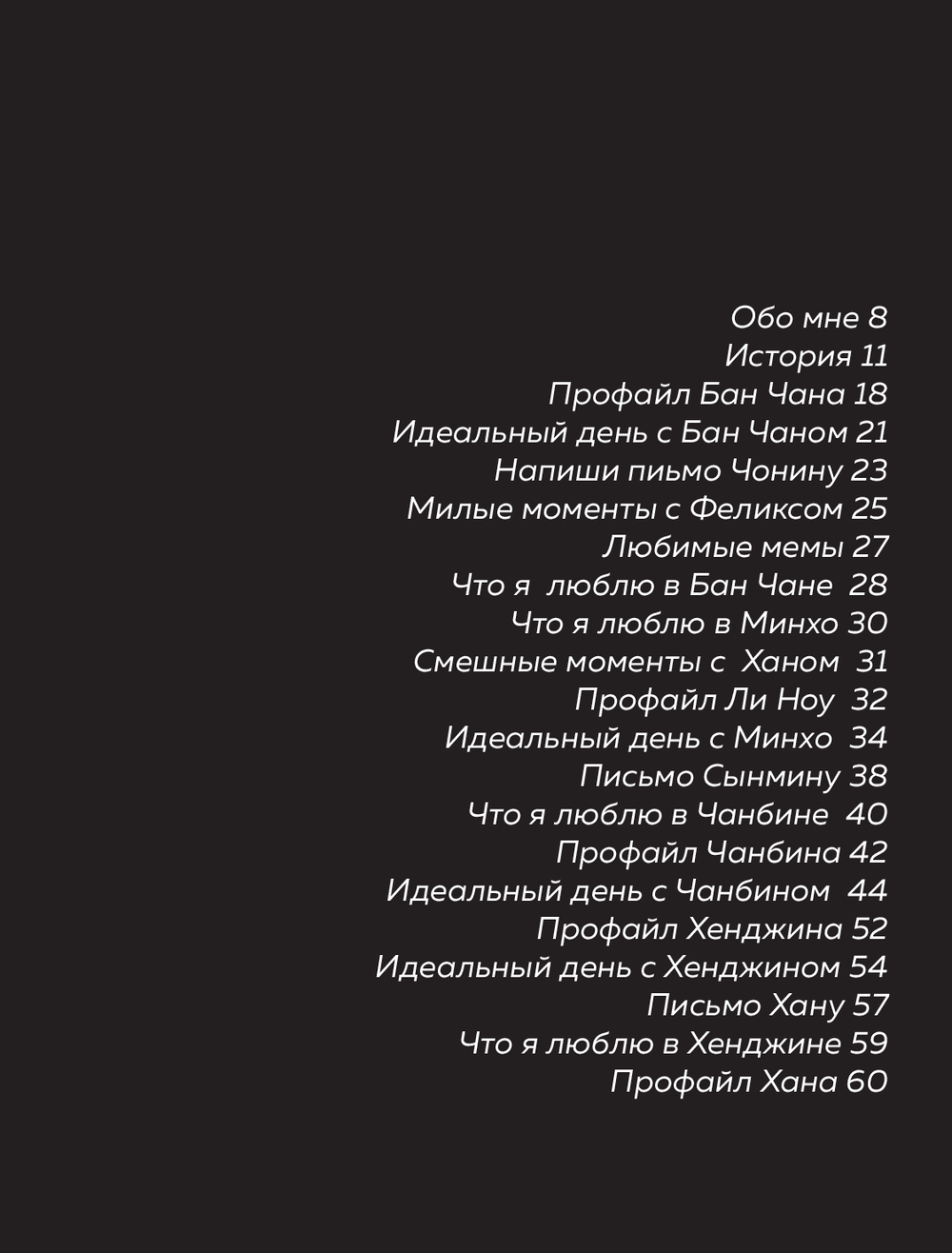 Если бы тебе предложили провести один день с одним из участников Stray Kids, кого бы ты выбрала? Этот новый яркий фанбук позволит помечтать и приблизиться к любимой группе! Помимо фактов, дискографии и информации о каждом участнике, ты найдешь здесь страницы-слоты для написания писем музыкантам и яркие фотографии с любимыми айдолами.