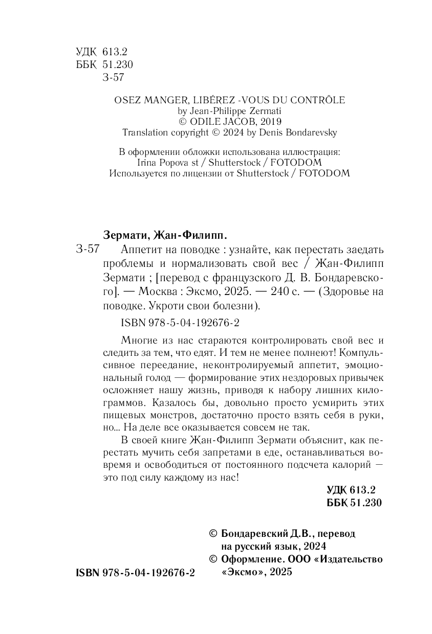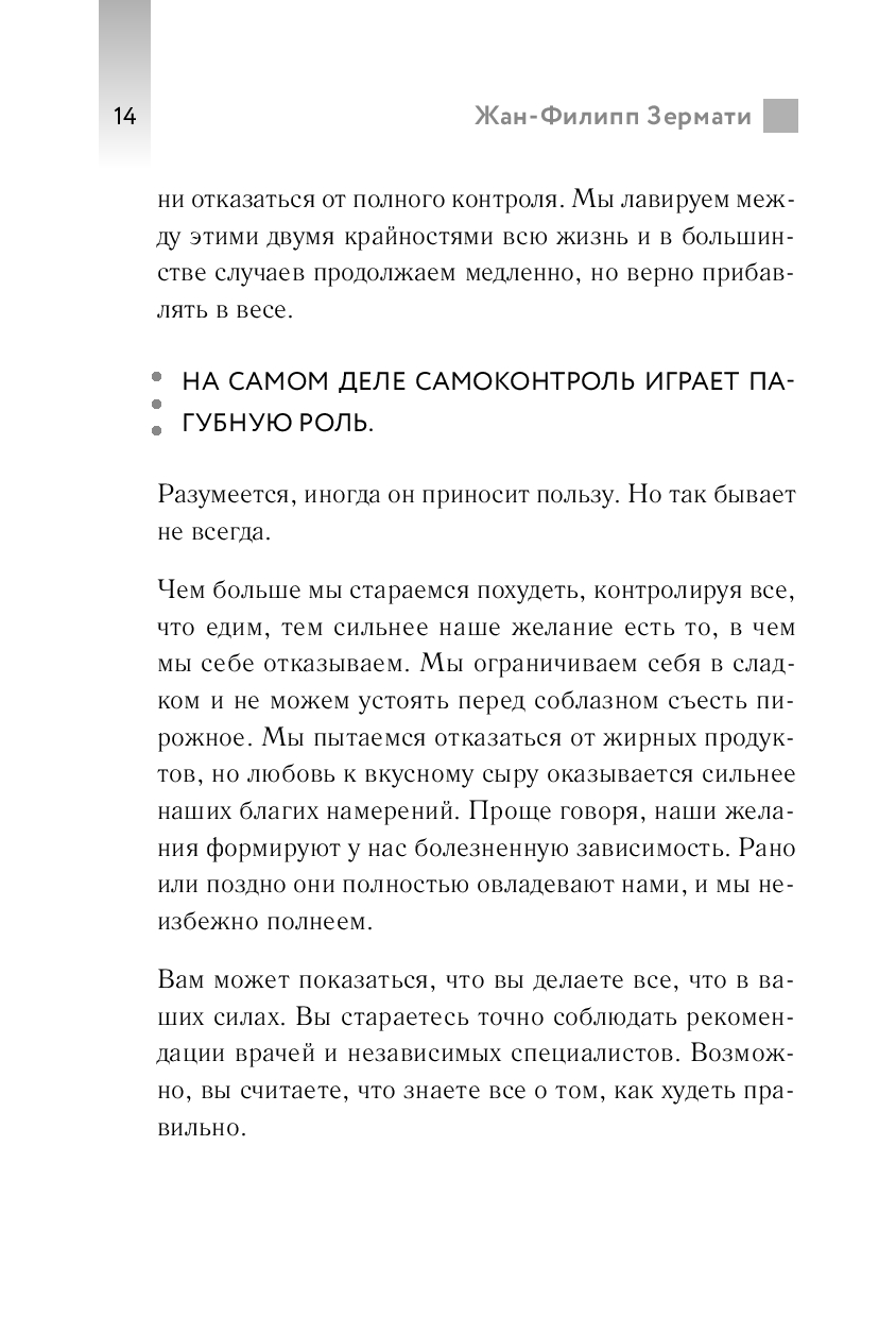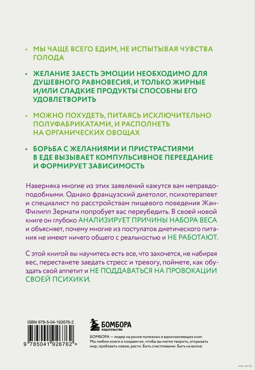 В своей книге Жан-Филипп Зермати объяснит, как перестать мучать себя запретами в еде, останавливаться вовремя и освободиться от постоянного подсчета калорий – это под силу каждому из нас!