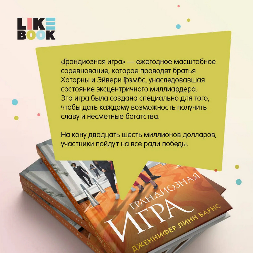 "Грандиозная игра" – ежегодное масштабное соревнование, которое проводят братья Хоторны и Эйвери Грэмбс, унаследовавшая состояние эксцентричного миллиардера. Эта игра была создана специально для того, чтобы дать каждому возможность получить славу и несметные богатства.
