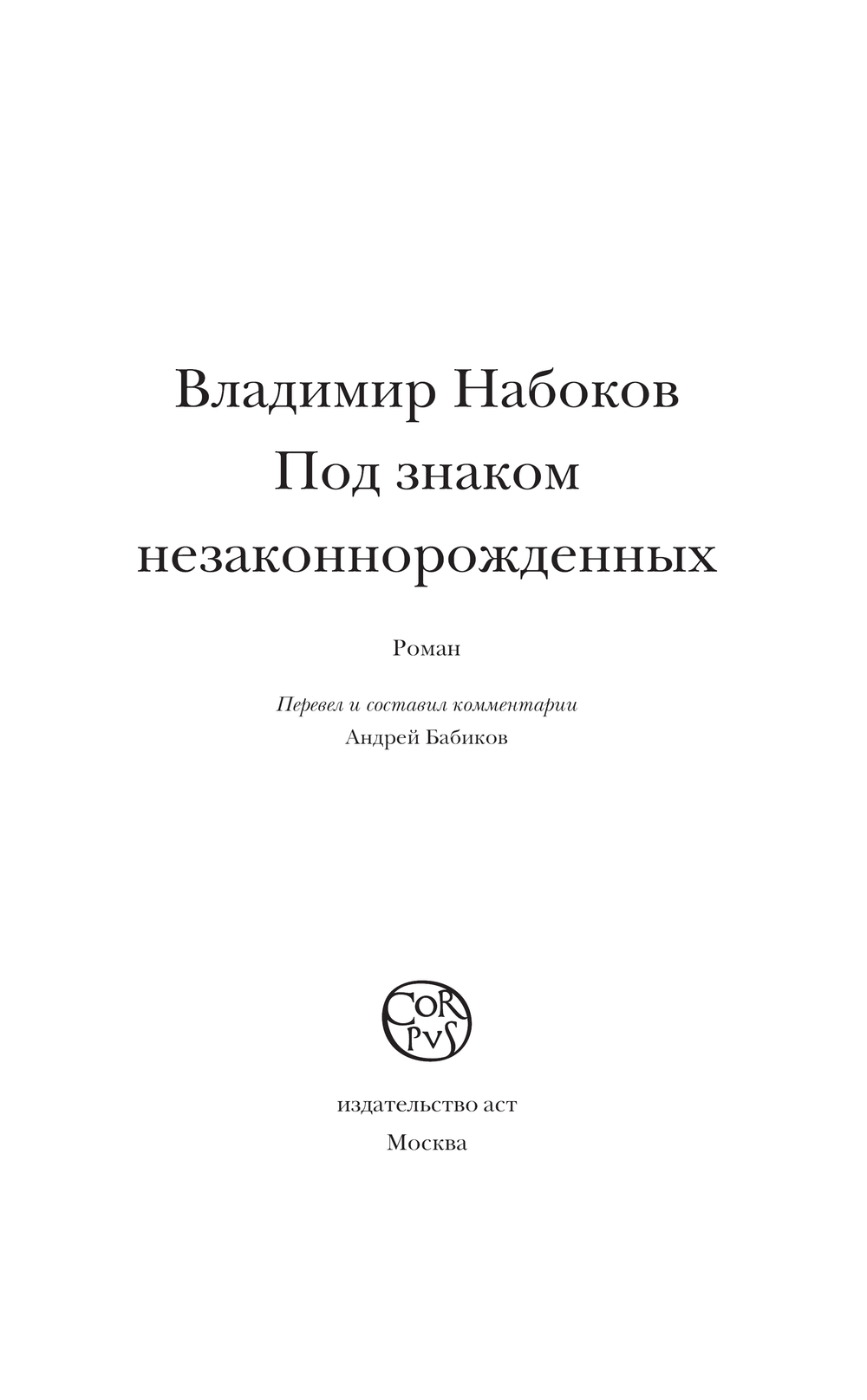 "Под знаком незаконнорожденных" (1947) – первый роман Владимира Набокова, созданный после переезда из Франции в Америку в один из самых сложных периодов жизни писателя. Вопреки своему обыкновению, Набоков избрал для него общественно значимую и весьма современную тему: жизнь выдающегося человека в условиях тоталитарного государства. Он посвящен противостоянию всемирно известного философа Адама Круга, потерявшего жену и оставшегося с маленьким сыном, диктатуре "эквилистов" ("уравнителей"), всеми средствами стремящихся склонить его на свою сторону. Однако главная тема романа, по замечанию самого Набокова, – "это биение любящего сердца Круга и эта книга была написана именно ради страниц о Давиде и его отце, и ради этого ее следует читать".