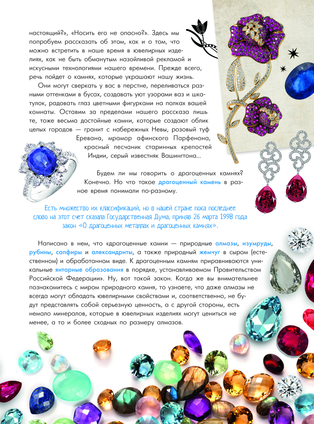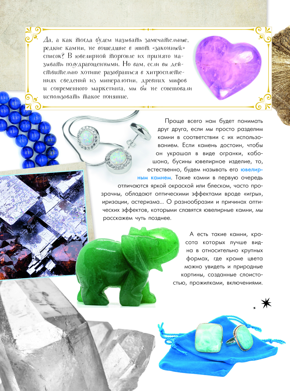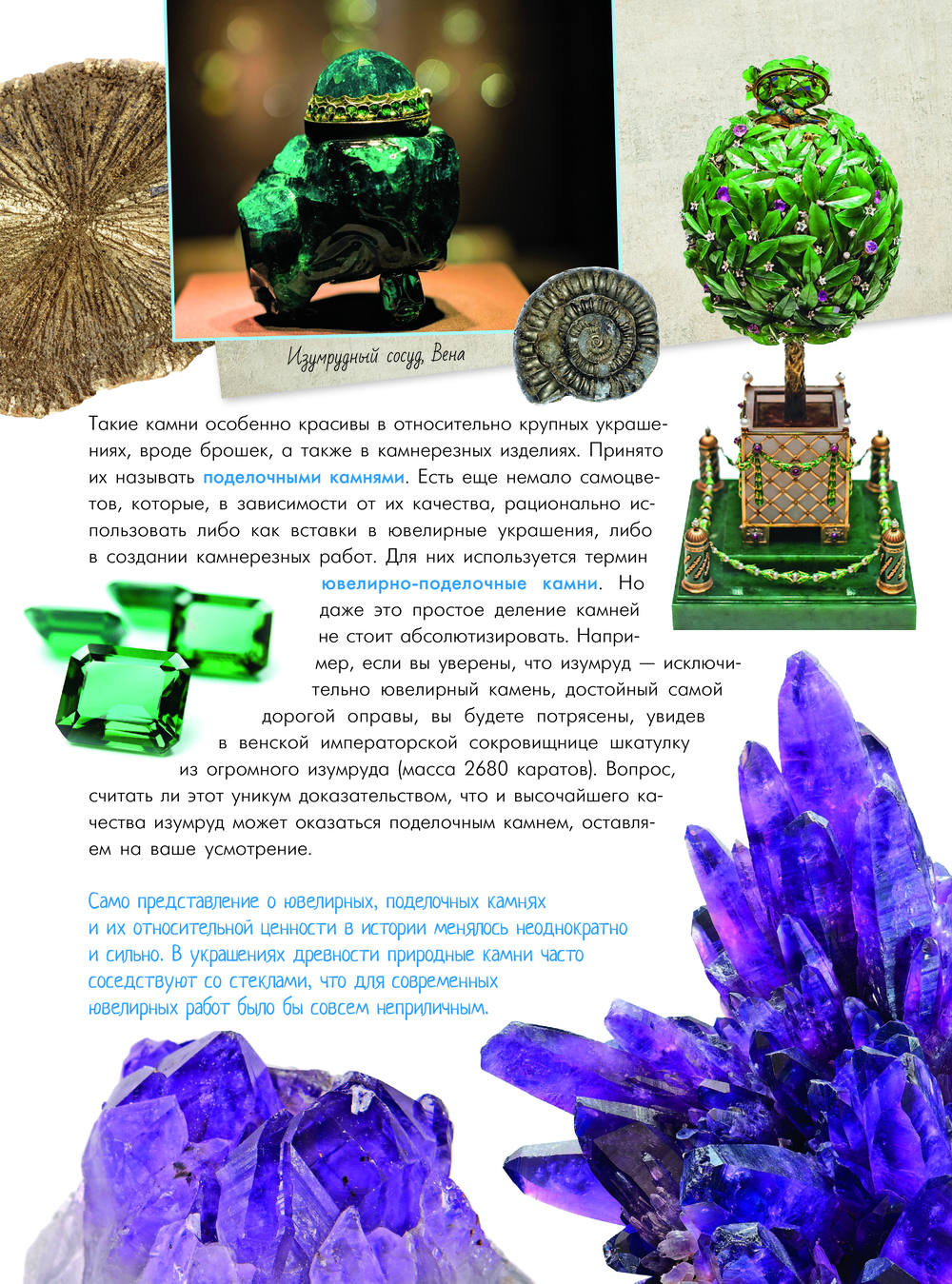 В этой книге вас ждут интереснейшие встречи с популярными самоцветами, на которые люди обратили внимание еще в глубокой древности, и с редкими, малоизвестными, но необычными камнями. История и самые интересные ювелирные украшения, легенды и предания, состав и особенности минерала, крупнейшие месторождения и цены за карат, изящество изделий и ценность необычных камней... Природные минералы и обработанные, облагороженные камни в ювелирных изделиях и различных предметах смотрятся одинаково прекрасно и поражают нас своей уникальностью, яркостью и красотой. Откройте для себя мир самоцветов и пусть путешествие по нему будет для вас неожиданным и интересным!