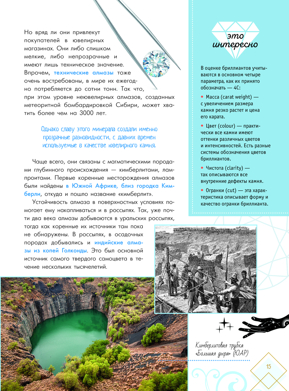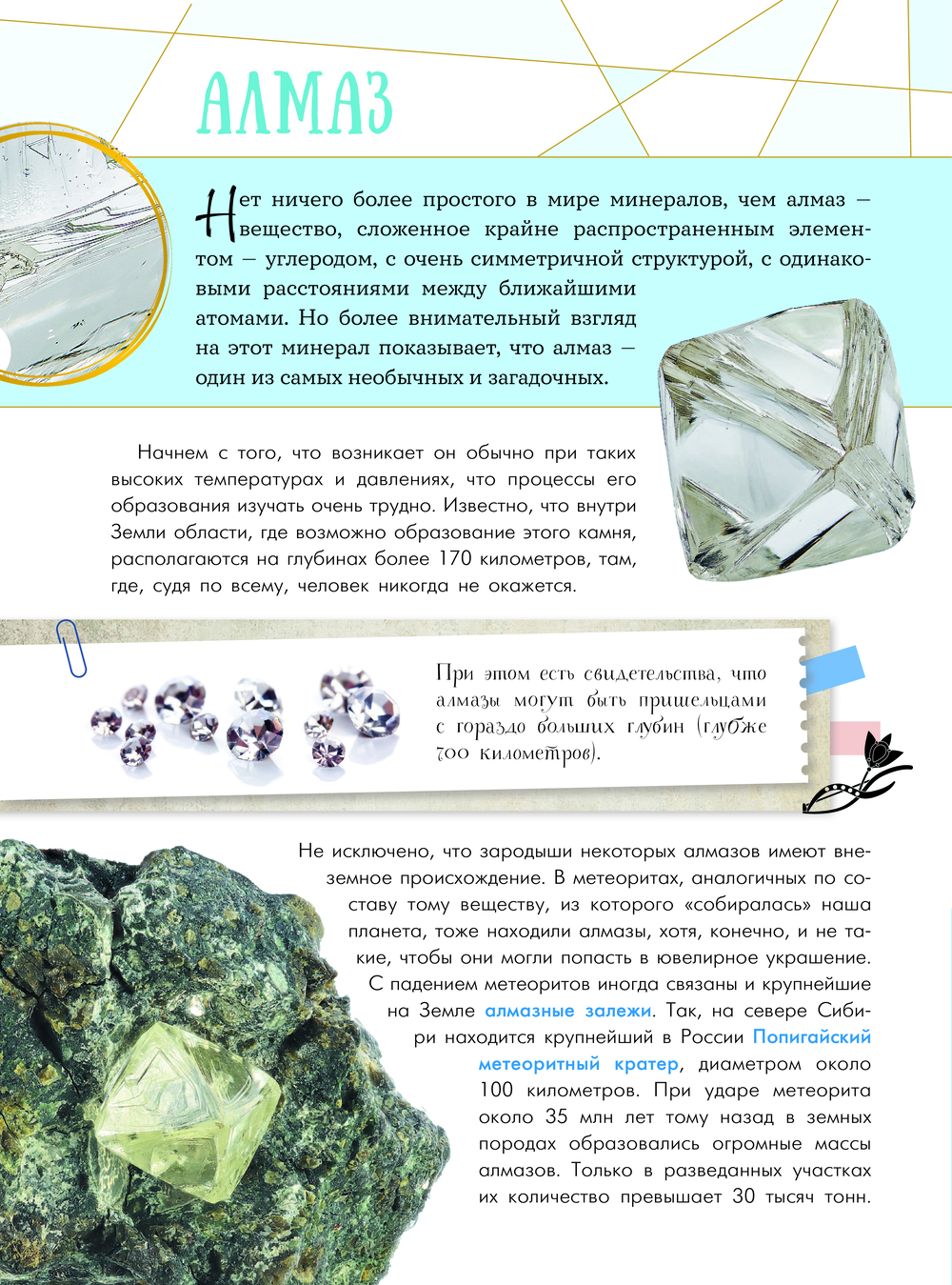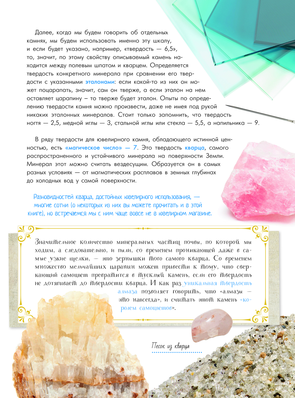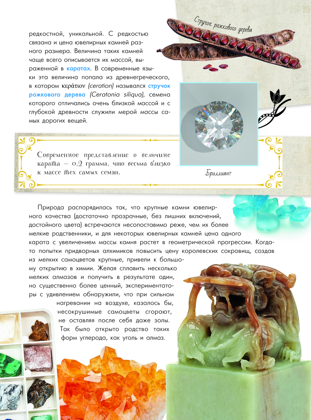В этой книге вас ждут интереснейшие встречи с популярными самоцветами, на которые люди обратили внимание еще в глубокой древности, и с редкими, малоизвестными, но необычными камнями. История и самые интересные ювелирные украшения, легенды и предания, состав и особенности минерала, крупнейшие месторождения и цены за карат, изящество изделий и ценность необычных камней... Природные минералы и обработанные, облагороженные камни в ювелирных изделиях и различных предметах смотрятся одинаково прекрасно и поражают нас своей уникальностью, яркостью и красотой. Откройте для себя мир самоцветов и пусть путешествие по нему будет для вас неожиданным и интересным!