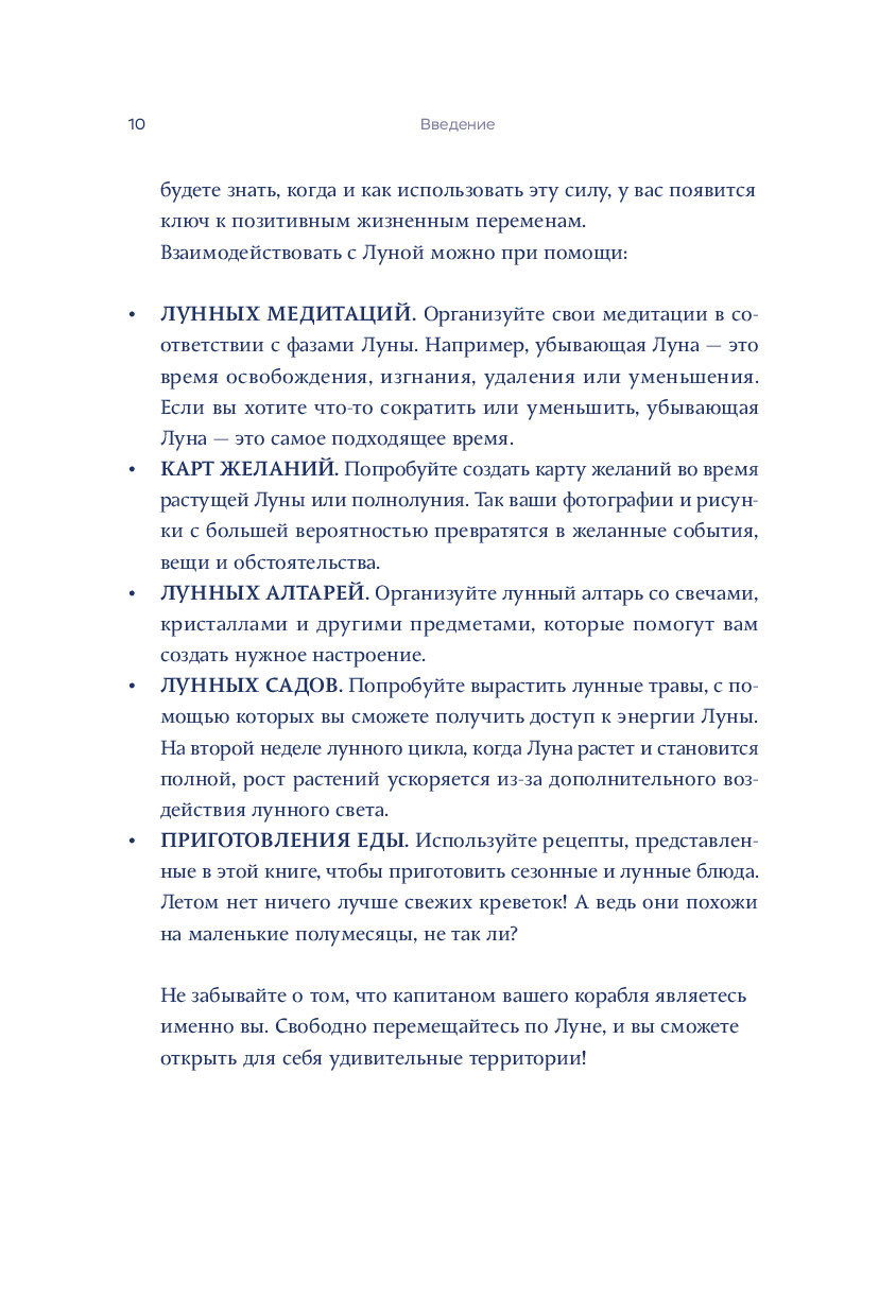 Посмотрите на небо, и вы найдете там способы, при помощи которых сможете соединиться с окружающим миром. Мы все чаще пользуемся электронными приспособлениями и забываем о том, как взаимодействовать с природой. Обратите внимание на Луну, а не на экран своего смартфона! Стоит вам понять огромный ее потенциал, и вы тут же начнете использовать ее силы, у вас появится ключ к позитивным жизненным переменам. А эта книга станет для вас проводником и своеобразной инструкцией к пониманию магической силы Луны.