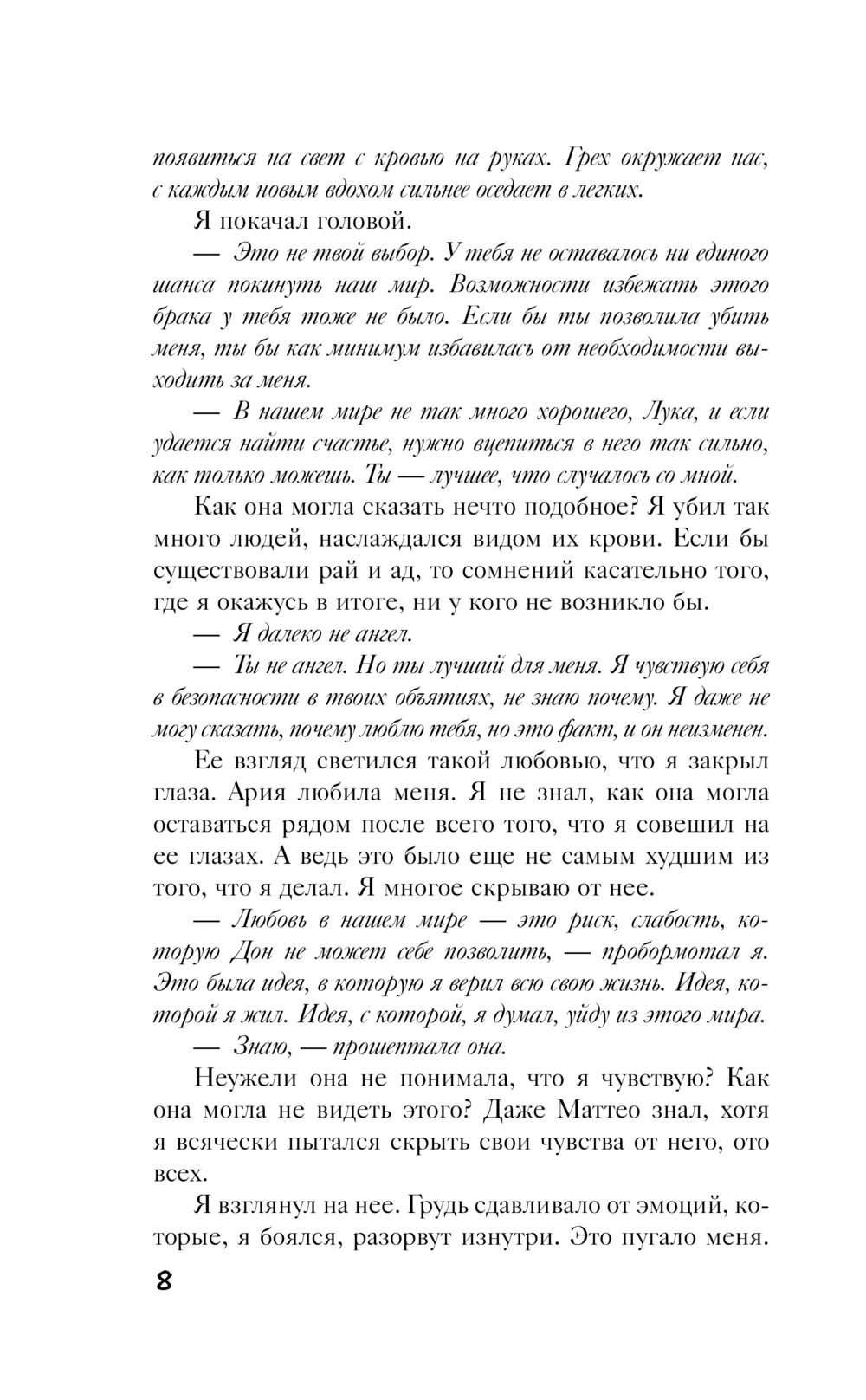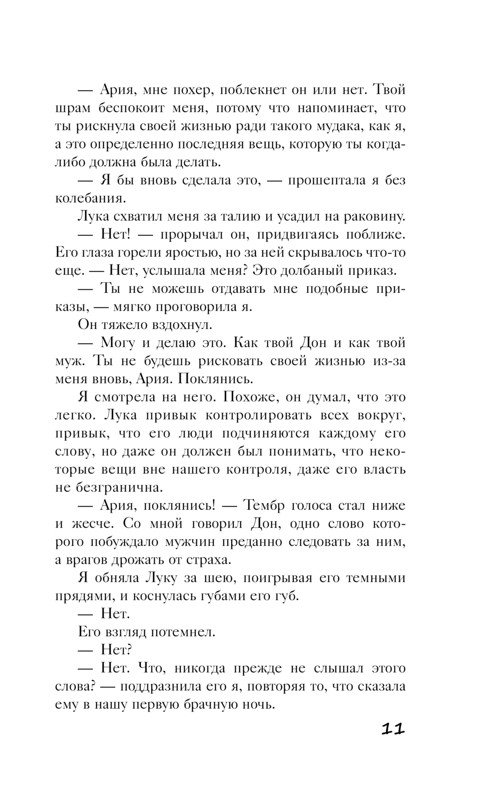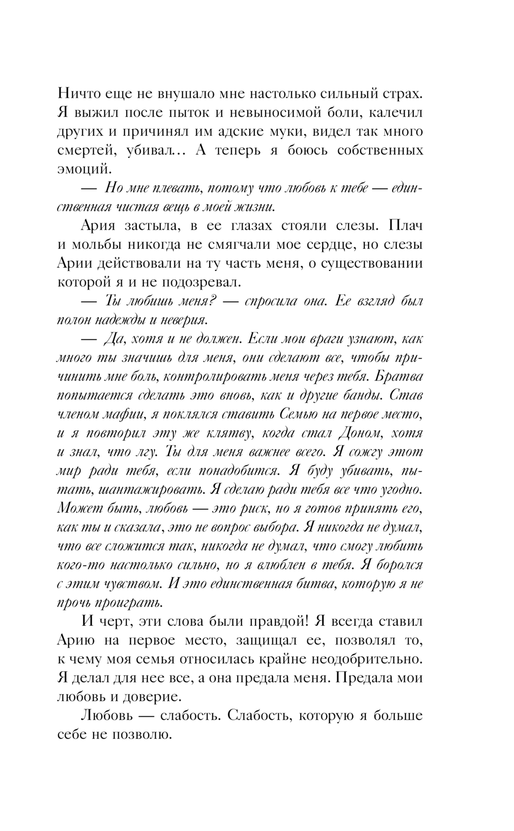 Став Доном, он поклялся, что Семья всегда будет для него на первом месте. И солгал. Потому что первое место уже занято Арией. Для нее он готов был сжечь этот мир дотла, если понадобится. Готов был убивать, пытать, шантажировать – все что угодно, чтобы защитить любимую. Лука верил, что жена никогда его не предаст. Но он ошибался.