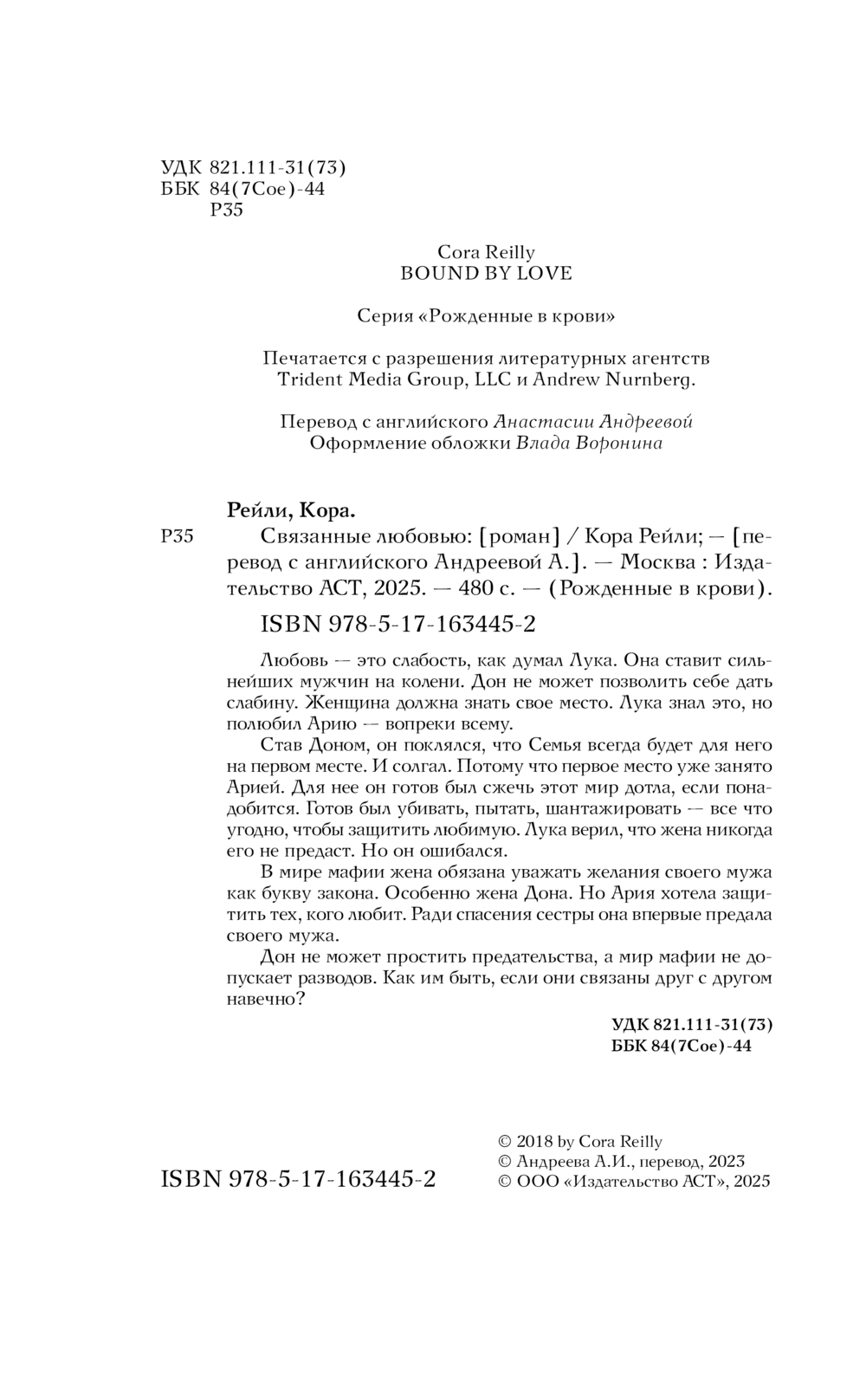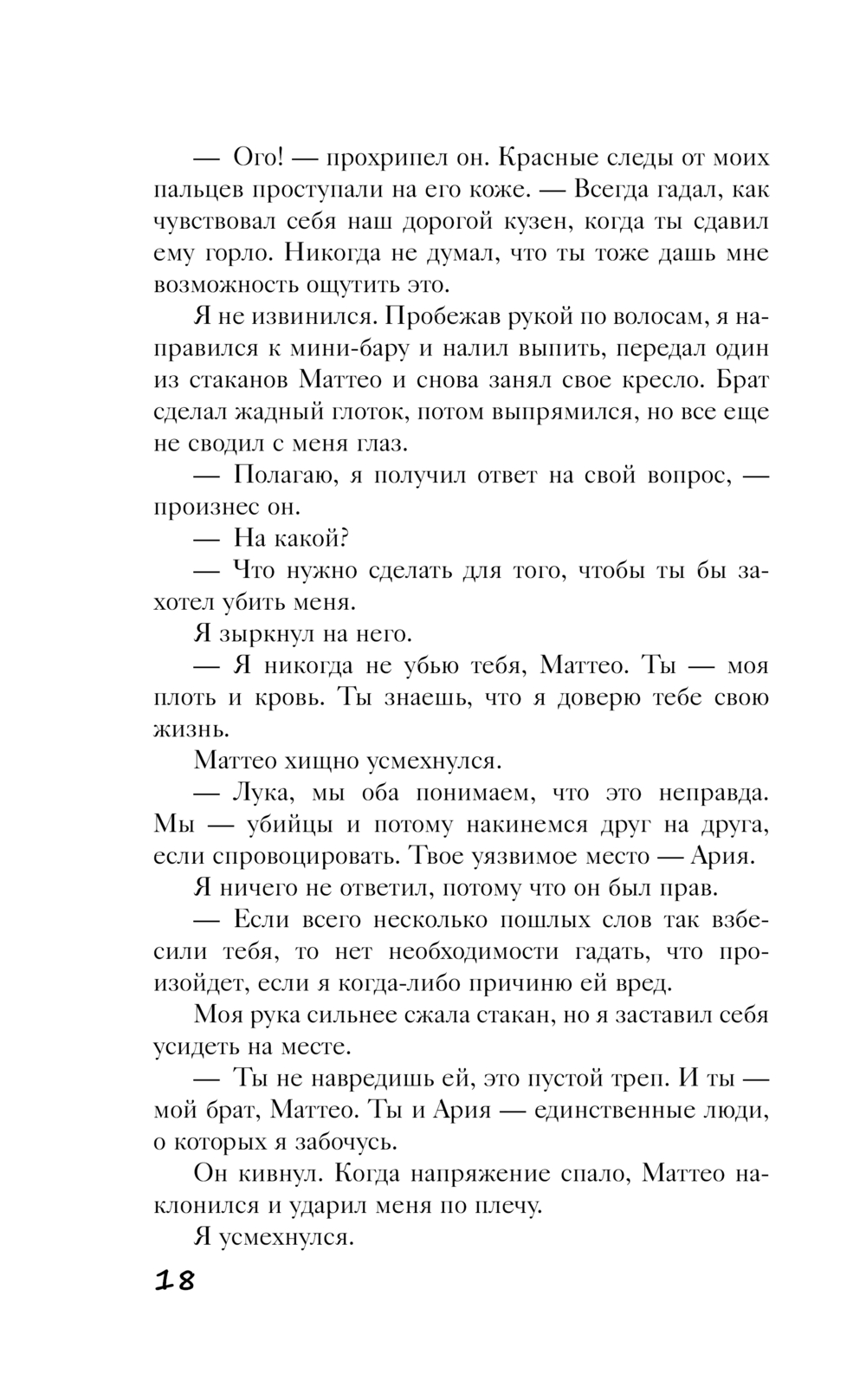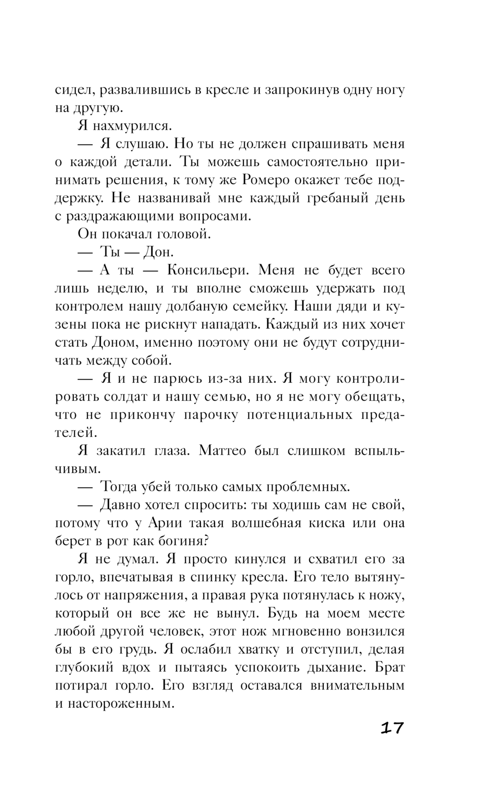 Став Доном, он поклялся, что Семья всегда будет для него на первом месте. И солгал. Потому что первое место уже занято Арией. Для нее он готов был сжечь этот мир дотла, если понадобится. Готов был убивать, пытать, шантажировать – все что угодно, чтобы защитить любимую. Лука верил, что жена никогда его не предаст. Но он ошибался.