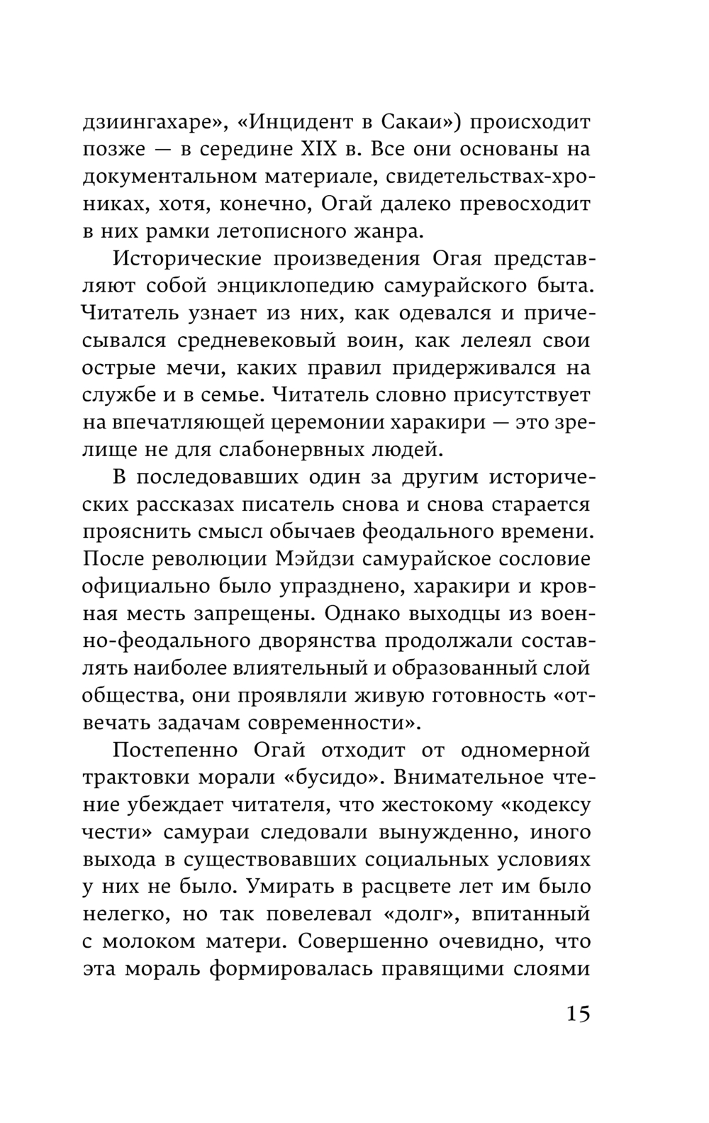 Мори Огай – до сих пор один из самых популярных авторов в Японии. В сборнике представлены произведения в жанре романтизм, основоположником которого Огай был в своей стране. А также исторические повести и рассказы, ставшие в некотором роде энциклопедией самурайской жизни и быта.