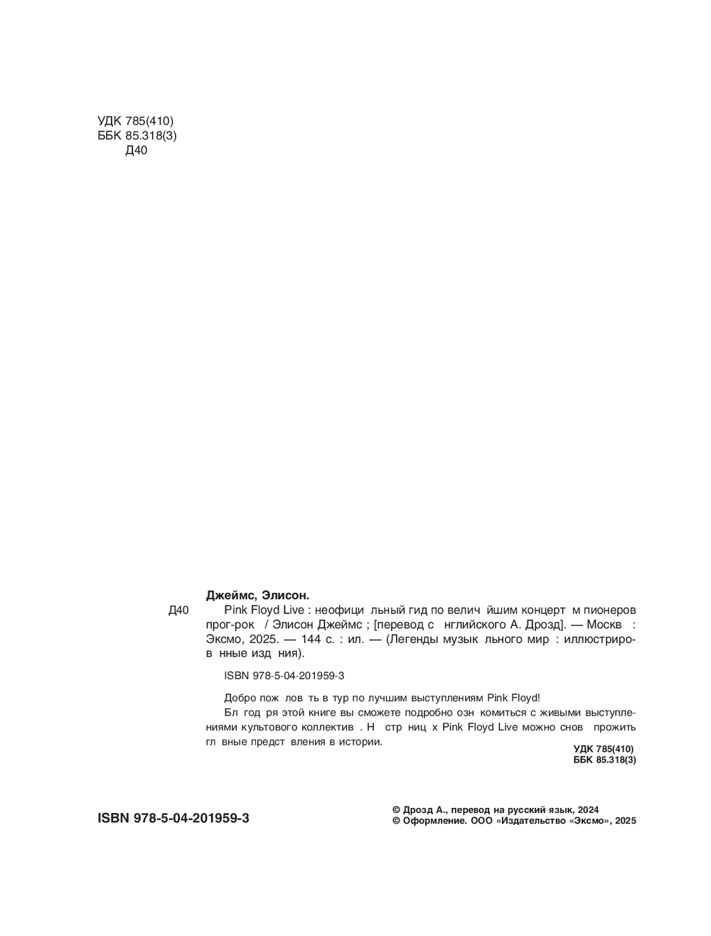Благодаря этой книге вы сможете подробно ознакомиться с живыми выступлениями культового коллектива. На страницах Pink Floyd Live можно снова прожить главные представления в истории.