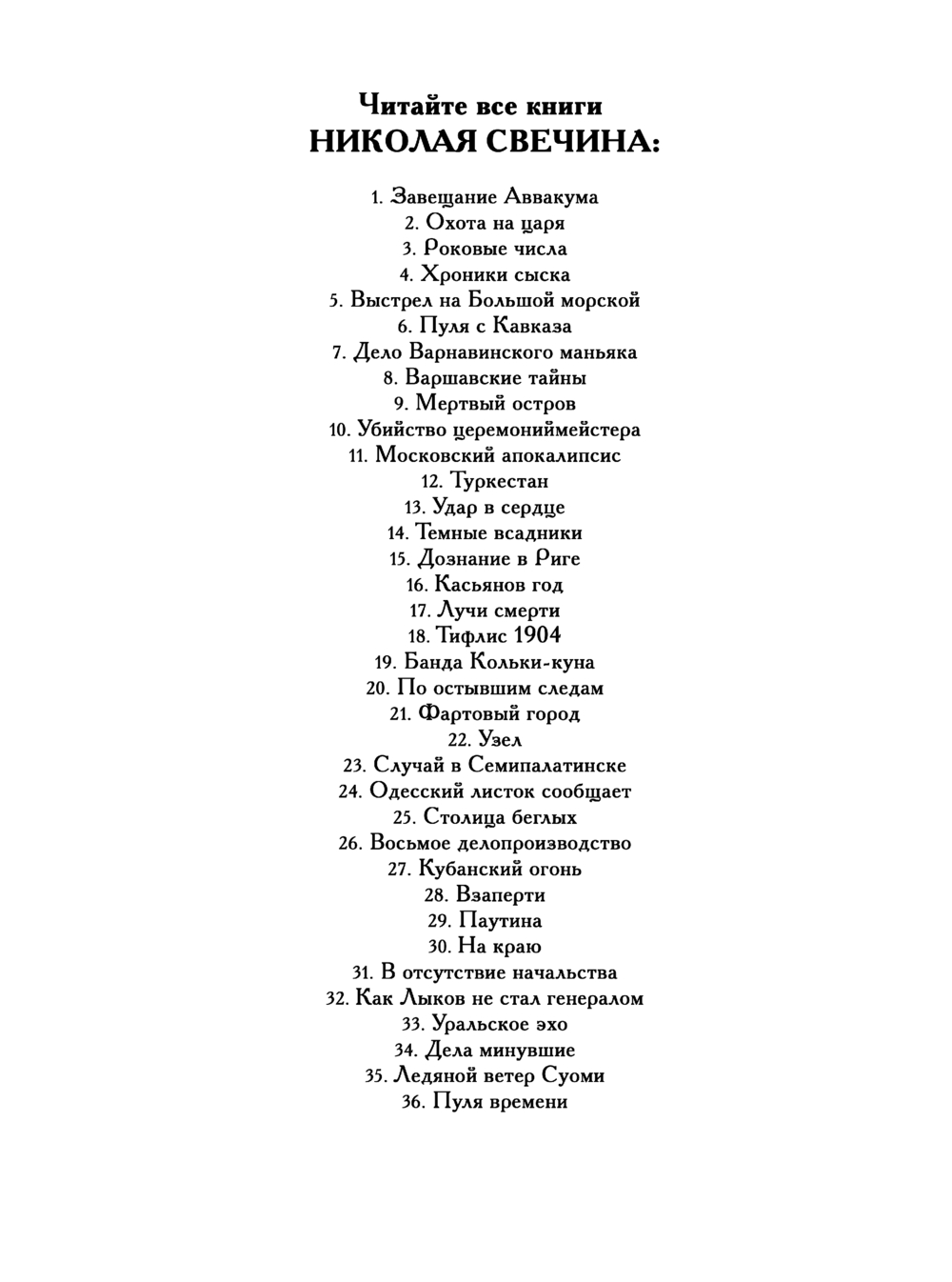| Серия | Исторический детективъ Николая Свечина |