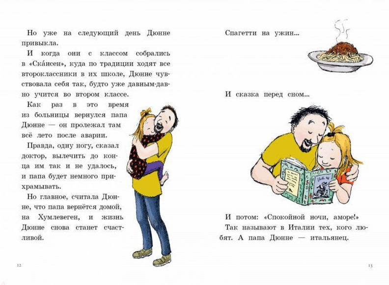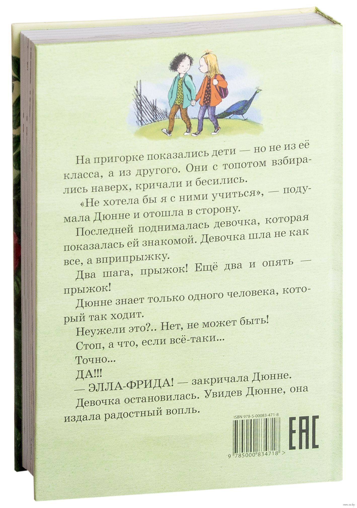 Первые летние каникулы в жизни Дюнне закончились, и она возвращается домой, в Стокгольм, к учёбе. К счастью, школа – это не одни лишь уроки: в сентябре учительница повезла второклассников в "Скансен", музей под открытым небом с большим зоопарком. Там было здорово, пока вредные Викки и Микки не обидели Дюнне – да так, что она отстала от класса и потерялась. Всё это было бы ужасно грустно, если бы не Элла-Фрида! Ведь лучшая подруга всегда оказывается именно там, где тебе нужно! Дюнне мечтает рассказать о своих приключениях папе, но вечером он, как всегда, занят своими делами: в последнее время папа думает только о своей подруге Вере...