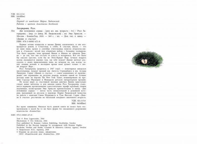 По всему миру за счастливой жизнью девочки Дюнне пристально следят юные читатели, и для многих книги Русе Лагеркранц становятся первыми, прочитанными самостоятельно: шрифт крупный, главки недлинные, иллюстрации Эвы Эриксон притягательны и милы.