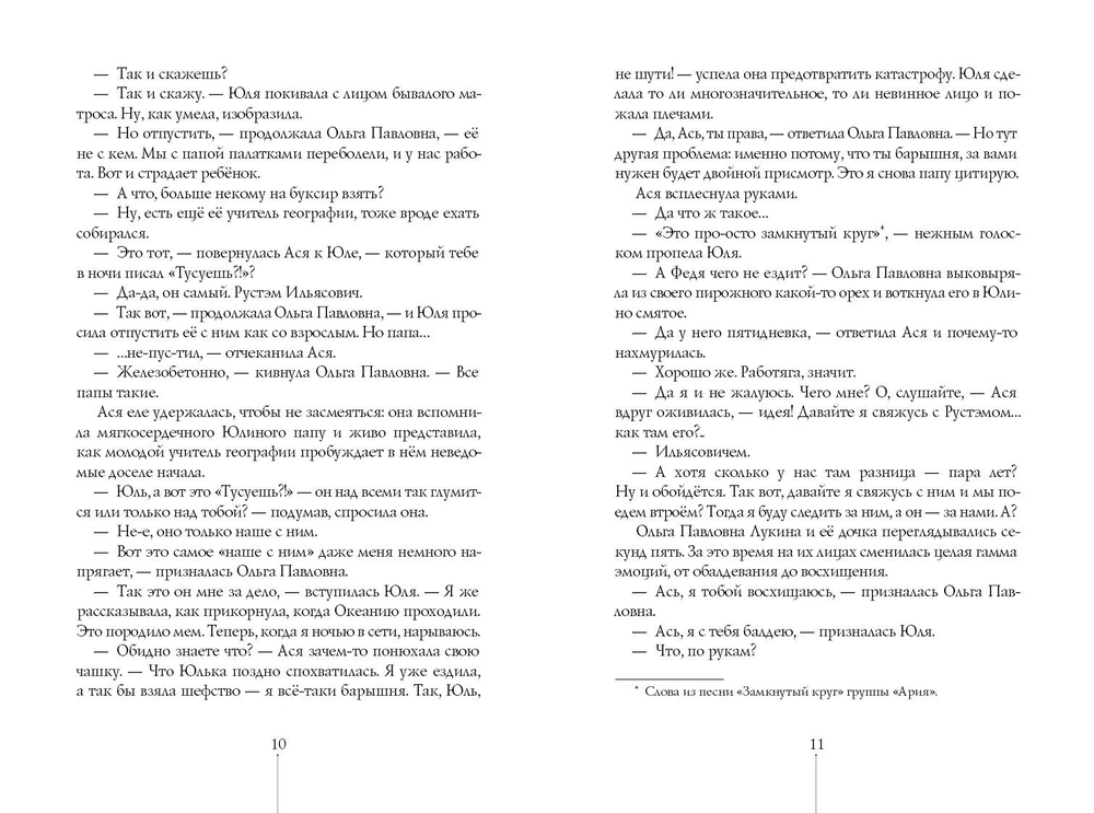 С первых страниц книги закручивается целый вихрь отношений, местами запутанных, местами нелёгких. Вика, Юля, Ася и Рустэм вместе с другими подростками и взрослыми едут на рок-фестиваль. Там они знакомятся с Игорьком – автостопщиком и будущим машинистом поезда – и встречаются с мужем Аси Федей. На фестивале герои влюбляются, ссорятся, мирят друг друга и узнают некоторые секреты... В поисках Викиных родителей компании предстоит отправиться в Петрозаводск – туда ведут первые следы. А вот что делать с загадочным стишком, приснившимся Юле: "Дорога тянется по кругу, ответ ищите друг у друга" – пока не решили.