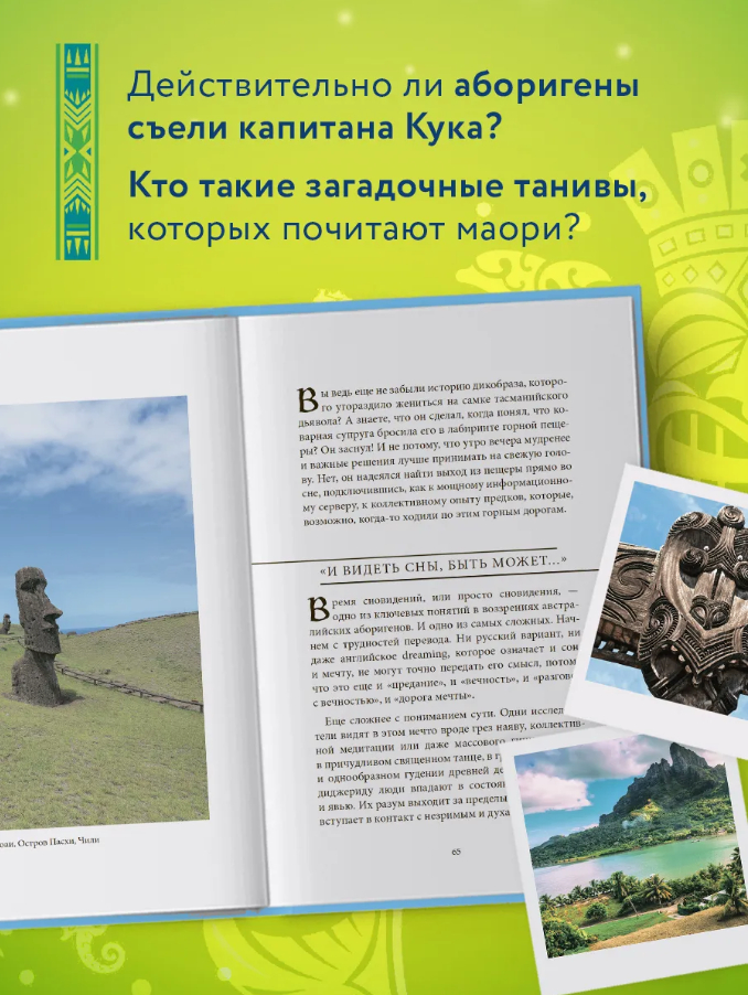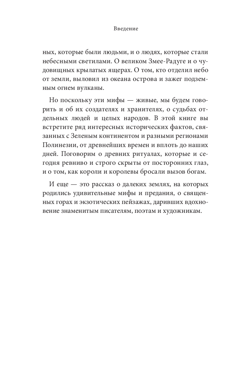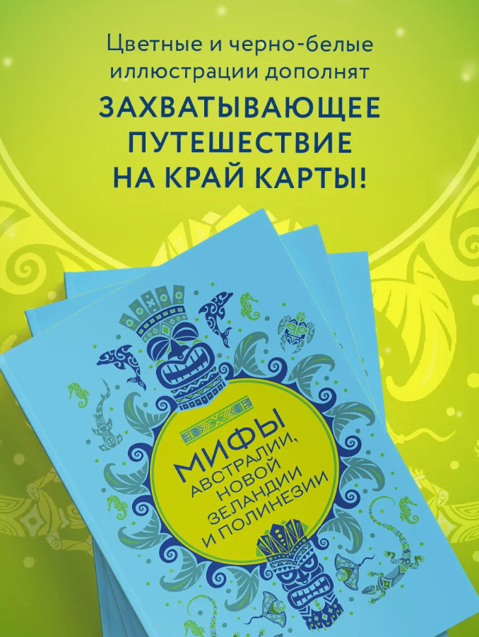 Эта книга расскажет о них: об австралийском боге грома Мамарагане в облике гигантского кузнечика, о небе Ранги и земле Папа, сплетенных в вечном объятии, о своенравной богине вулканов Пеле и полинезийском Прометее Мауи, подарившем людям не только огонь, но и райские острова, кокосовые пальмы и даже доску для виндсерфинга – а также о загадочных танивах, которых почитают маори, волшебном народце менехуне, похожем на европейских эльфов или гномов, и многих других.