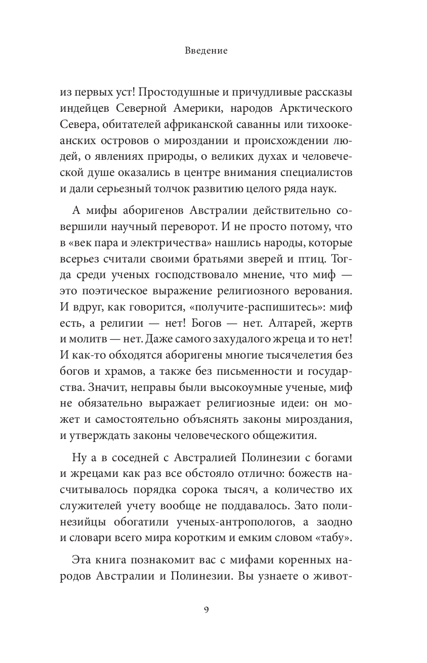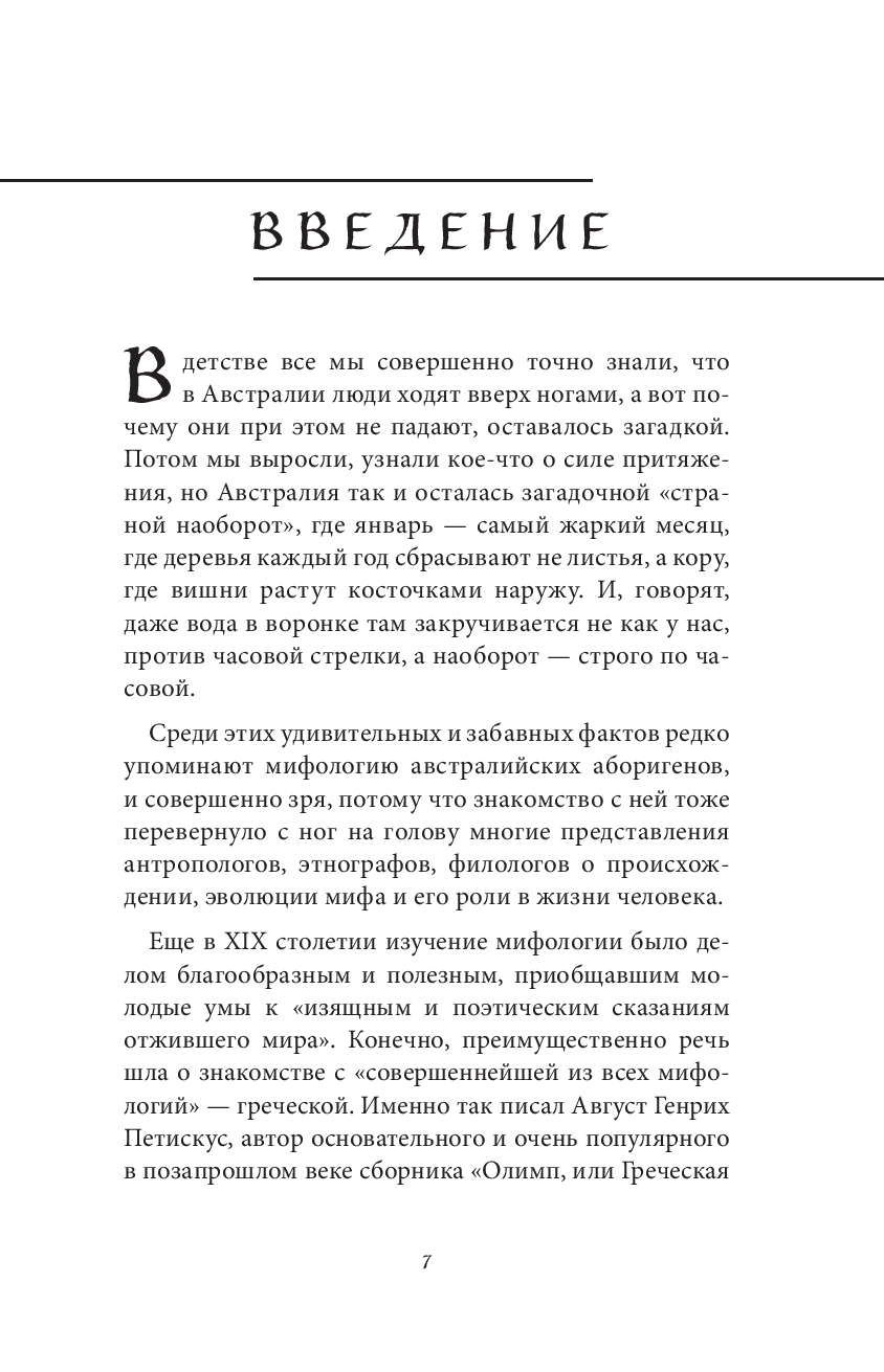 Мифы коренных народов Австралии и Океании излучают первозданную чистоту и очарование, как наши детские сны. Местные боги, словно строгие, но любящие родители, наказывают первых людей за их пороки и слабости, оставляя их в одиночестве подумать над своими поступками, но никогда не покидая навсегда. И эти же боги порой сами ведут себя как дети, завидуя, ревнуя и соперничая друг с другом.