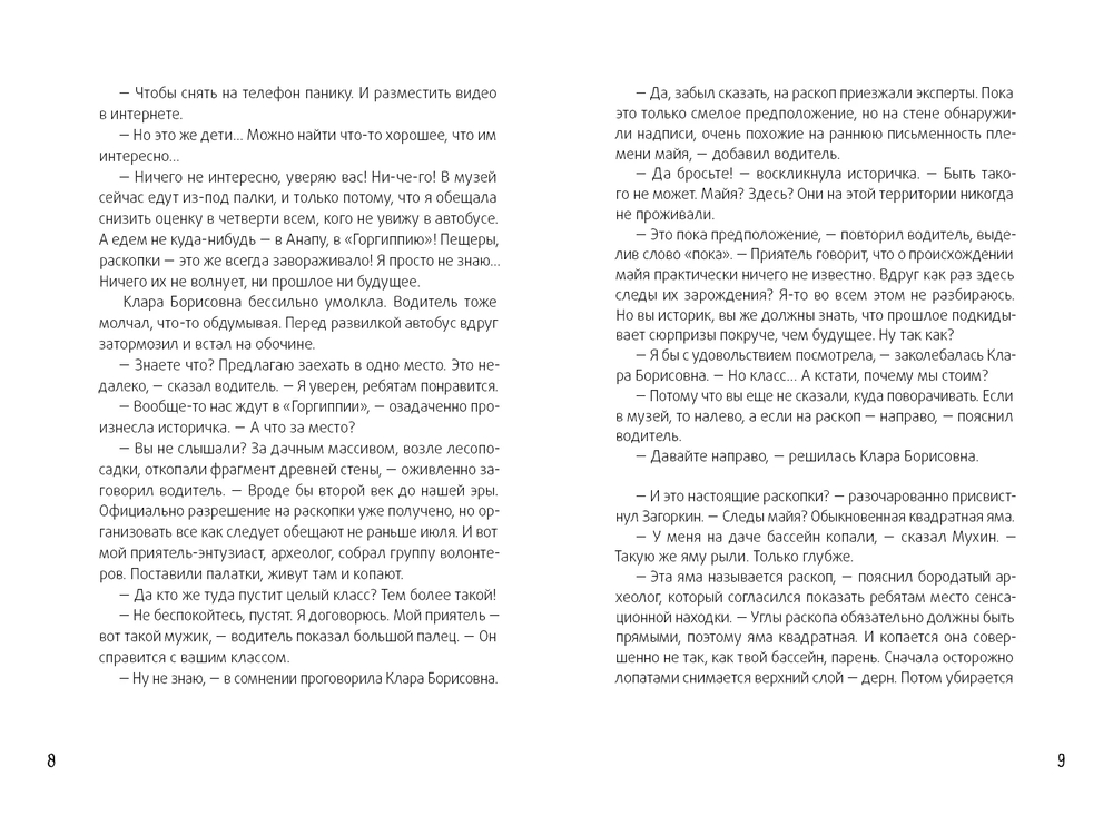 Но чем дальше школьники от 23 мая, тем слабее надежда вернуться назад в будущее – да и как стереть надпись, которую сделаешь только через неделю? Экскурсия к археологической находке, якобы относящейся к цивилизации майя, стала для троих ребят началом приключения, рассказ о котором не убедит ни одного взрослого. Или все же найдется тот, кто им поверит?