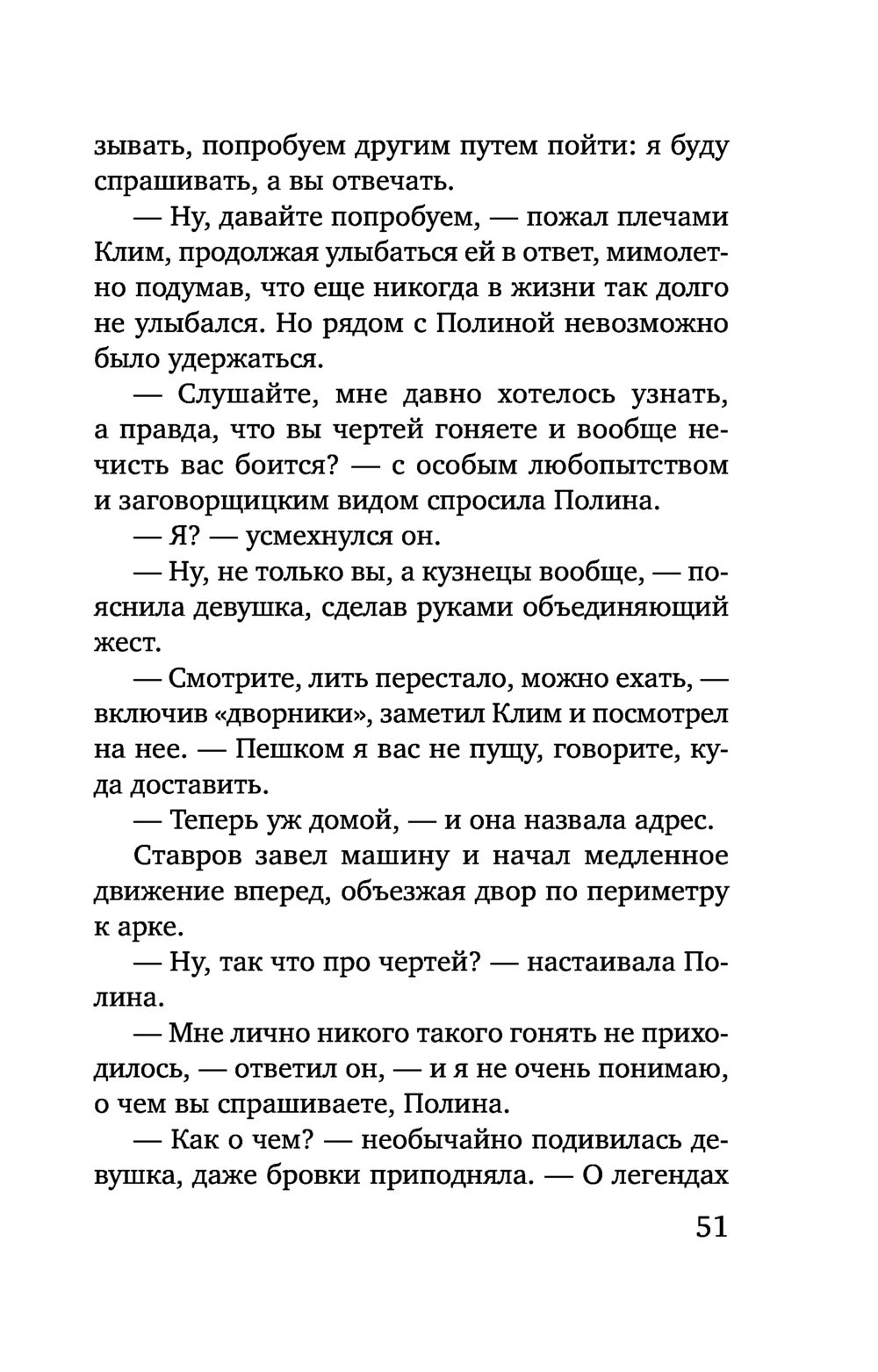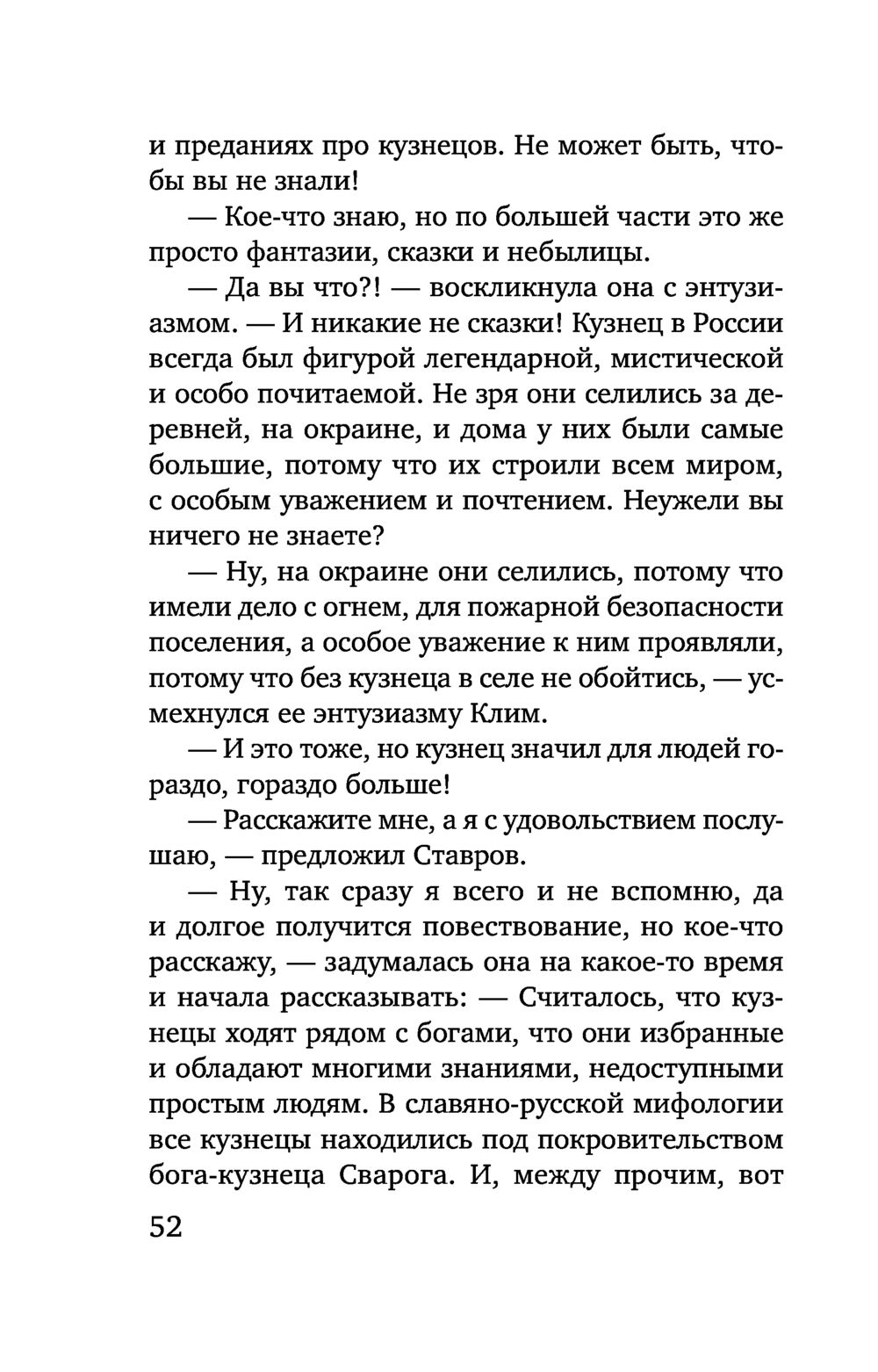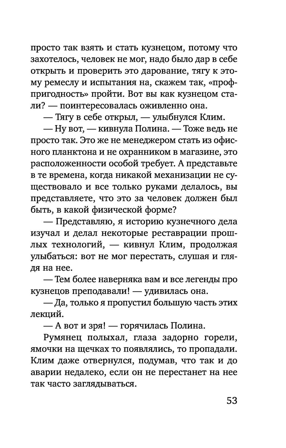 Клим умел плести кружево из металла, создавая в своей кузнице настоящие произведения искусства, и долгое время именно работа составляла главный смысл его жизни. Но встреча с Полиной показала ему, что бывает и другая жизнь. Эта девушка была похожа на каплю живительной росы – такая же прекрасная и чистая. Не удивительно, что она пленила сурового кузнеца с первого мига встречи, а волшебная ночь на Ивана Купалу закружила их в своем хороводе, зажгла в сердцах яркое пламя.