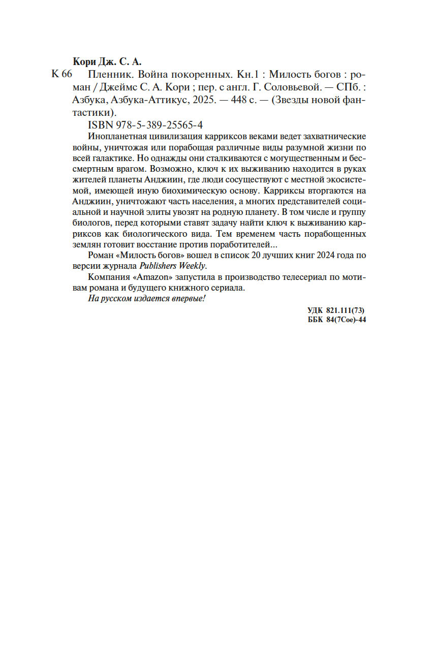 Роман "Милость богов" вошел в список 20 лучших книг 2024 года по версии журнала Publishers Weekly.