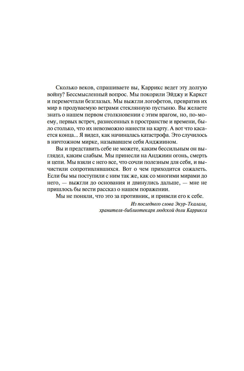 Инопланетная цивилизация карриксов веками ведет захватнические войны, уничтожая или порабощая различные виды разумной жизни по всей галактике. Но однажды они сталкиваются с могущественным и бессмертным врагом. Возможно, ключ к их выживанию находится в руках жителей планеты Анджиин, где люди сосуществуют с местной экосистемой, имеющей иную биохимическую основу. Карриксы вторгаются на Анджиин, уничтожают часть населения, а многих представителей социальной и научной элиты увозят на родную планету. В том числе и группу биологов, перед которыми ставят задачу найти ключ к выживанию карриксов как биологического вида. Тем временем часть порабощенных землян готовит восстание против поработителей…