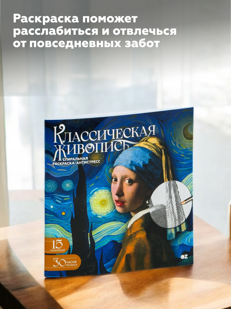 Погрузитесь в мир искусства и творчества с уникальной спиральной раскраской "Классическая живопись"!Это возможность раскрасить элементы шедевров от Ван Гога до Пикассо, создавая свои собственные интерпретации известных картин.