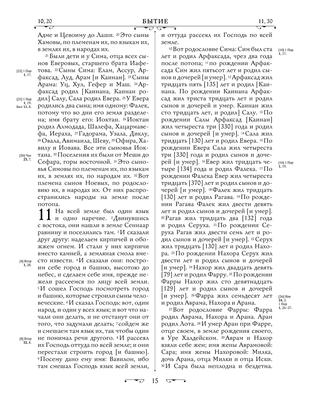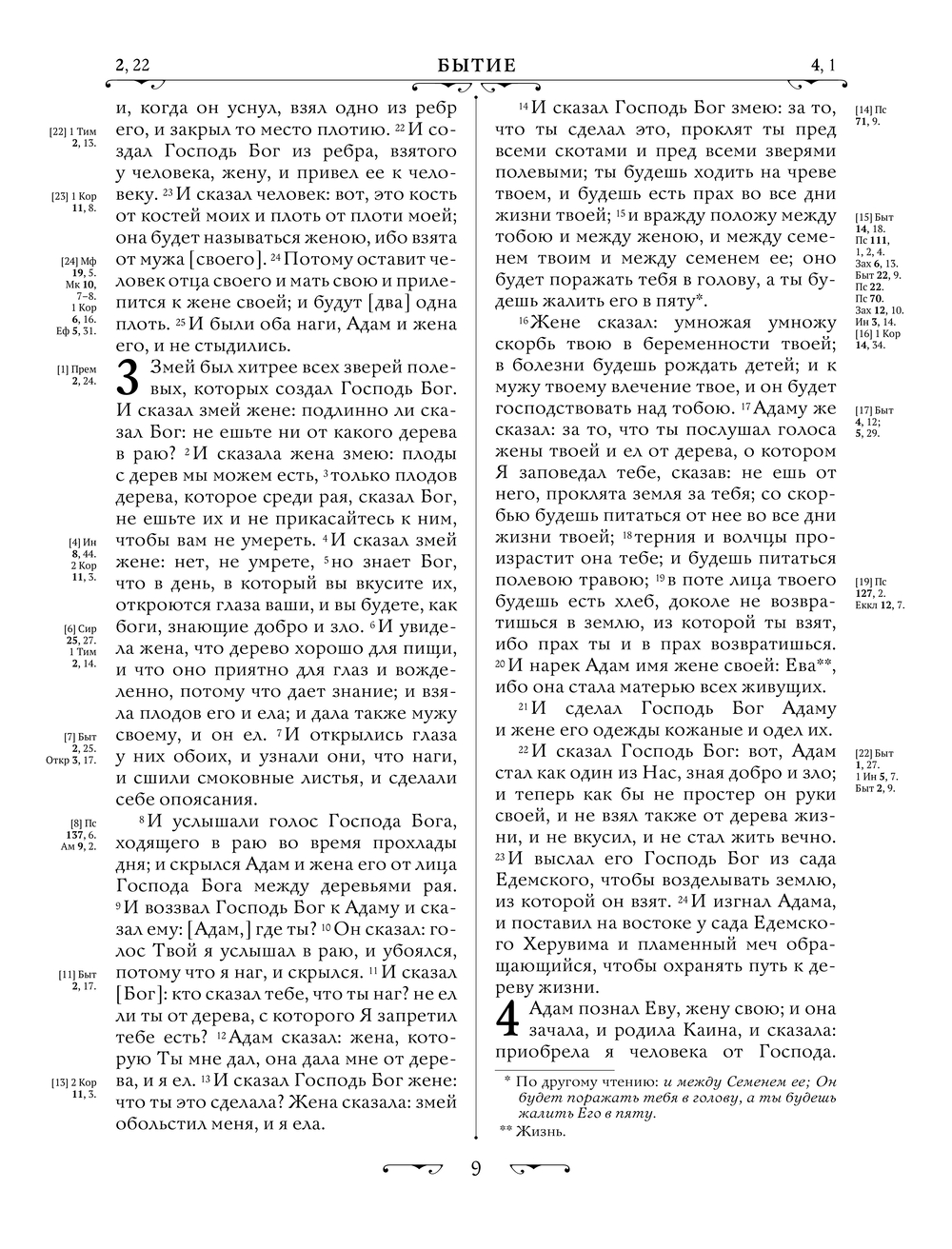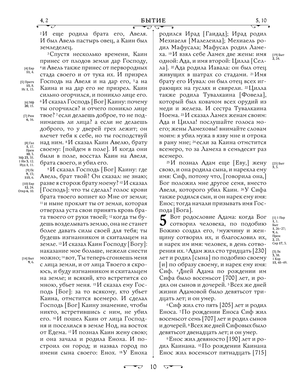 Полная Библия в русском Синодальном переводе, совершенном в XIX веке Российским Святейшим синодом для домашнего чтения. Содержит все книги церковнославянской Елизаветинской Библии: 50 книг Ветхого Завета и 27 книг Нового Завета. С параллельными местами, указателем евангельских и апостольских церковных чтений, последовательностью евангельских событий по четырем евангелистам, последовательностью событий по книге Деяний святых апостолов, картами и другими приложениями.