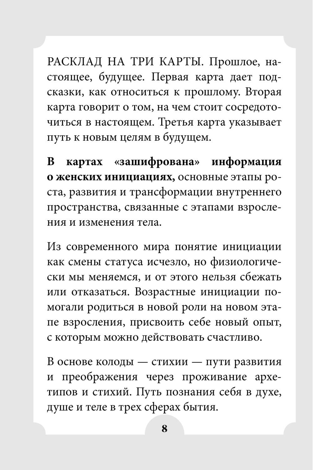 Карты созданы по мотивам известной книги Анны Бену "Женские стихии. Исцеляющие практики через архетипы сказок и мифов".