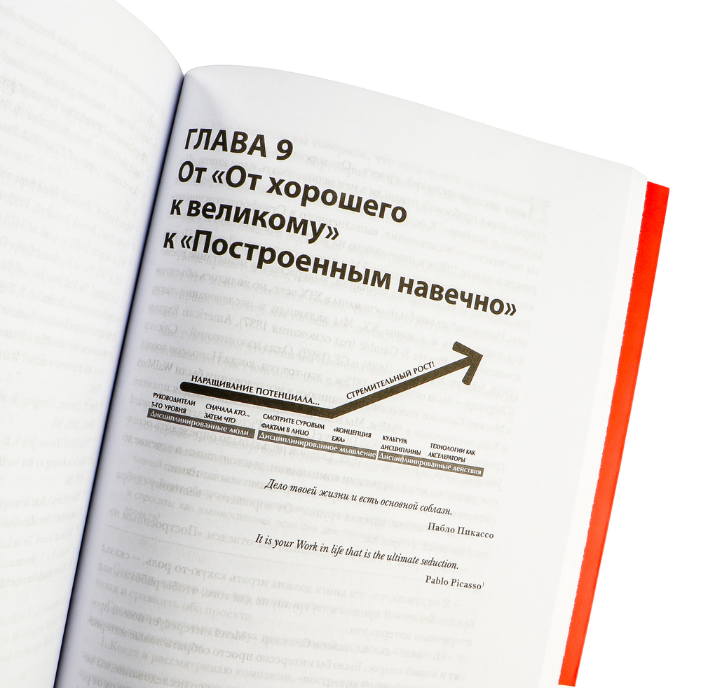 На этот вопрос отвечает бестселлер "От хорошего к великому". В нем Джим Коллинз пишет о результатах своего шестилетнего исследования, в котором компании, совершившие прорыв, сравнивались с теми, кому это не удалось. У всех великих компаний обнаружились схожие элементы успеха, а именно дисциплинированные люди, дисциплинированное мышление, дисциплинированные действия и эффект маховика.