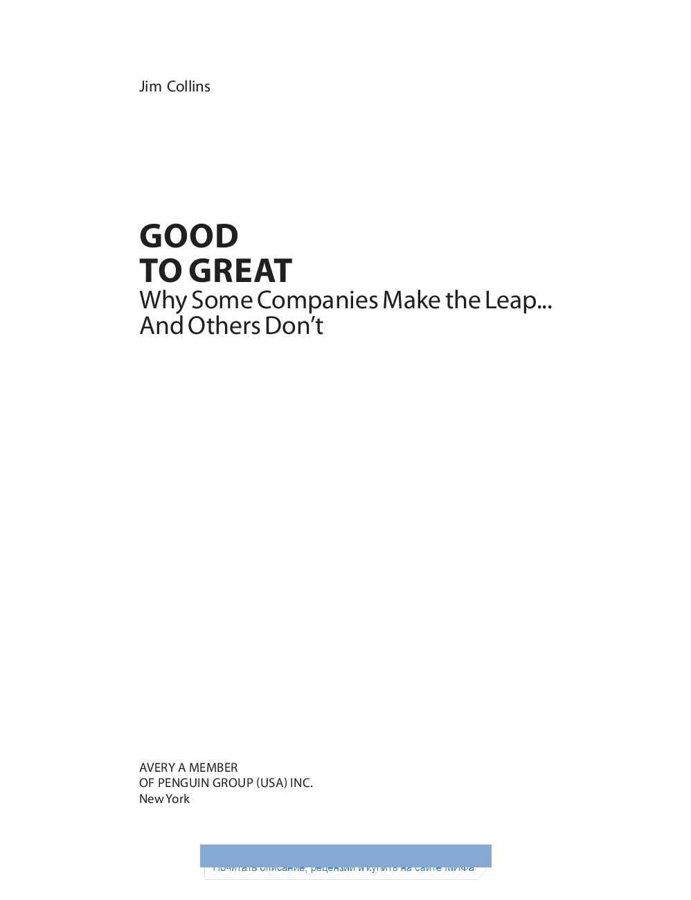 | Название в оригинале | Good to Great. Why Some Companies Make the Leap… And Others Don't |