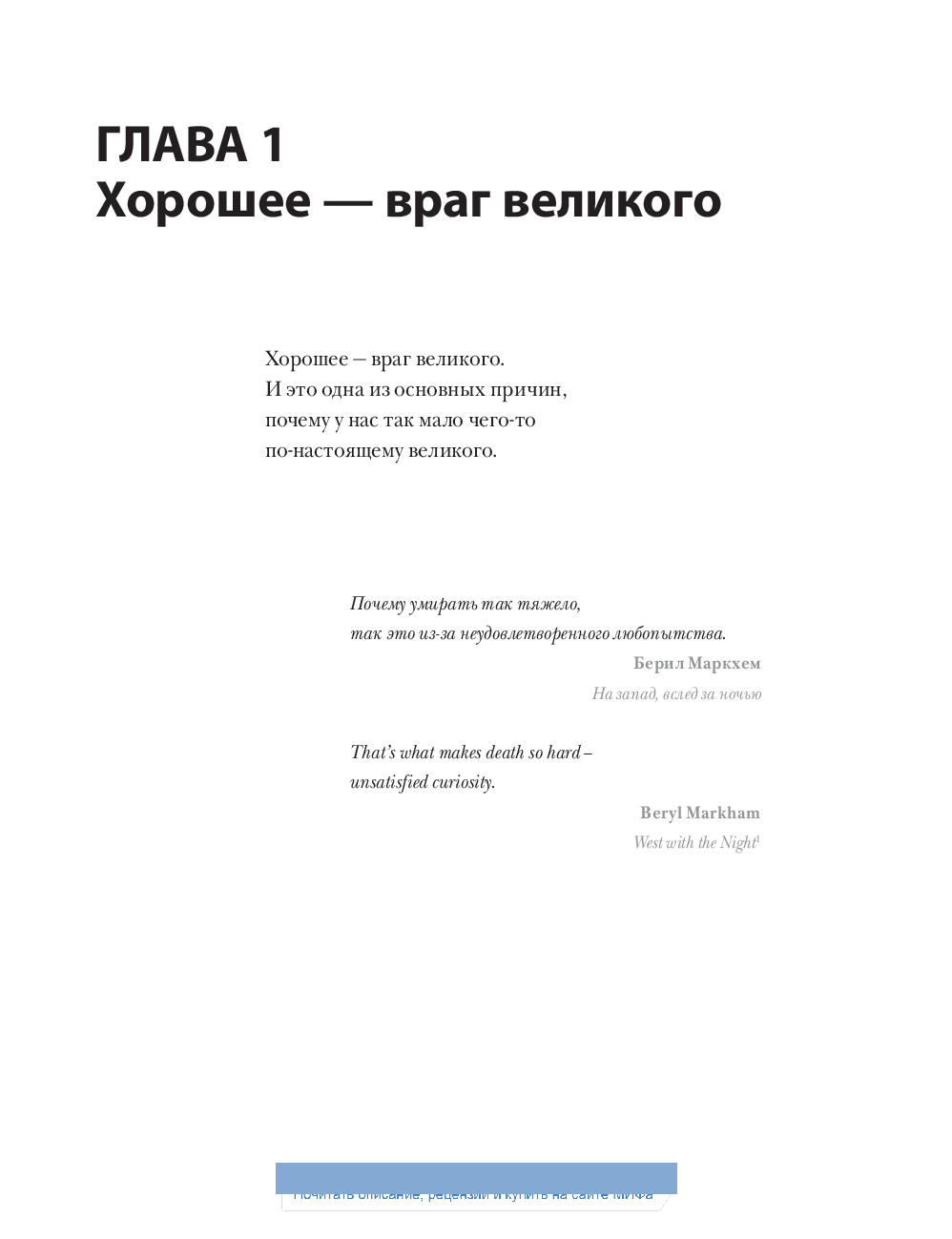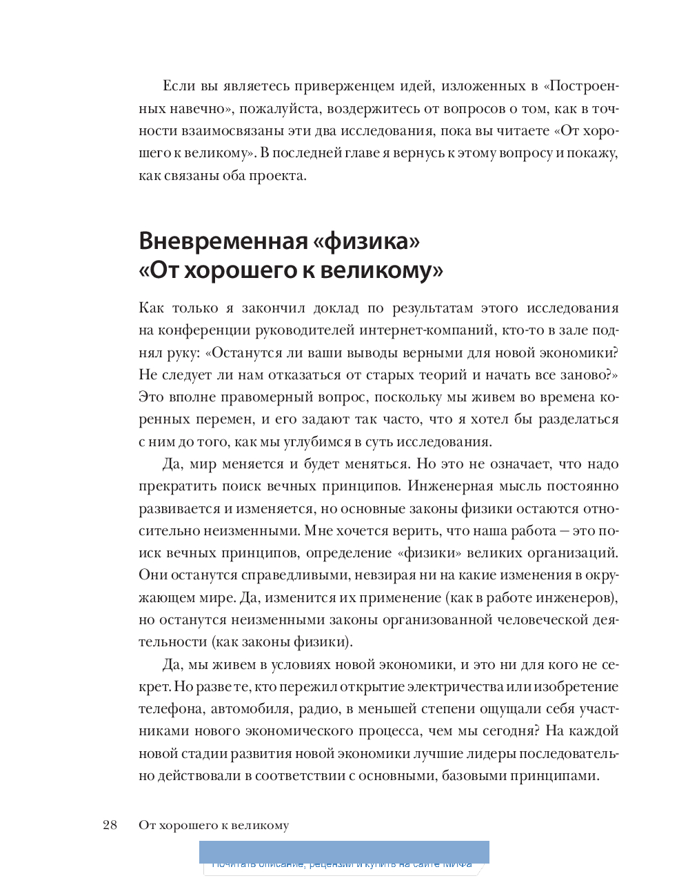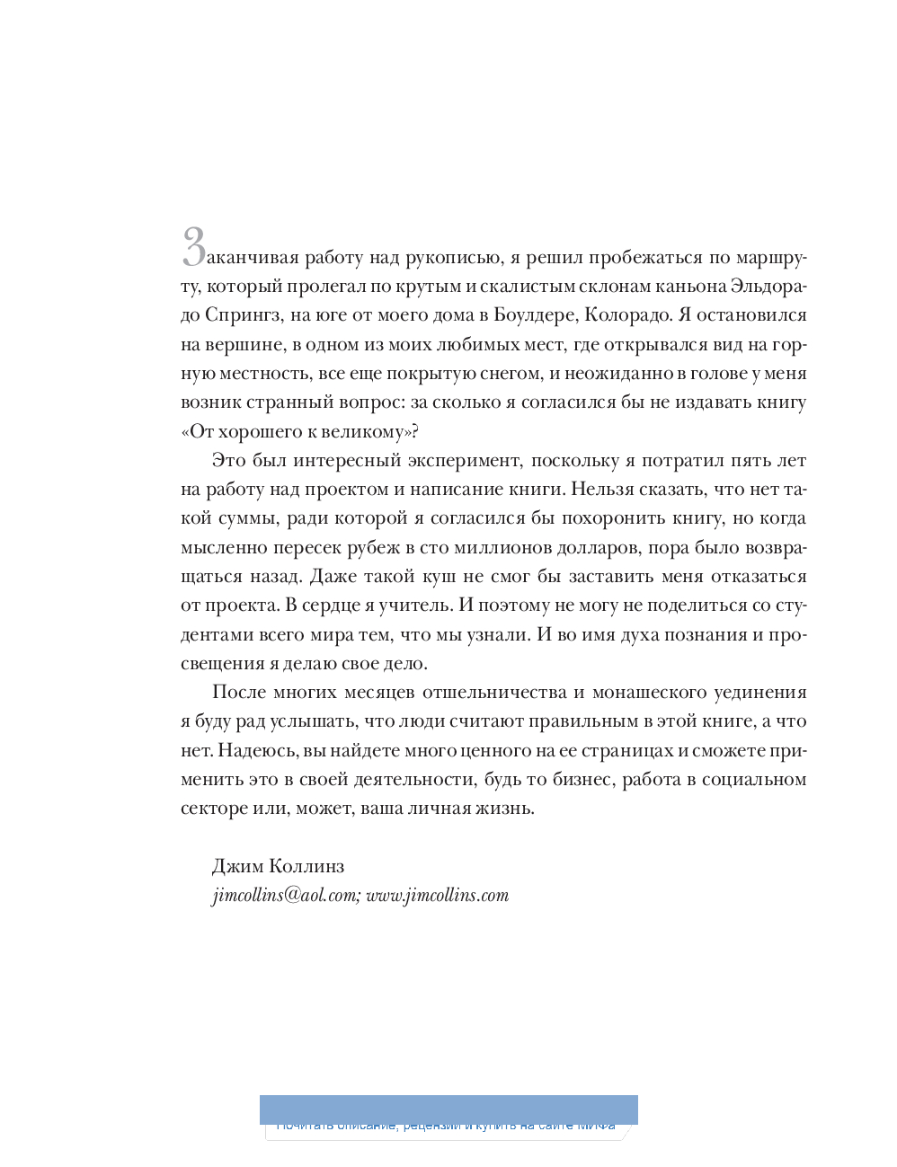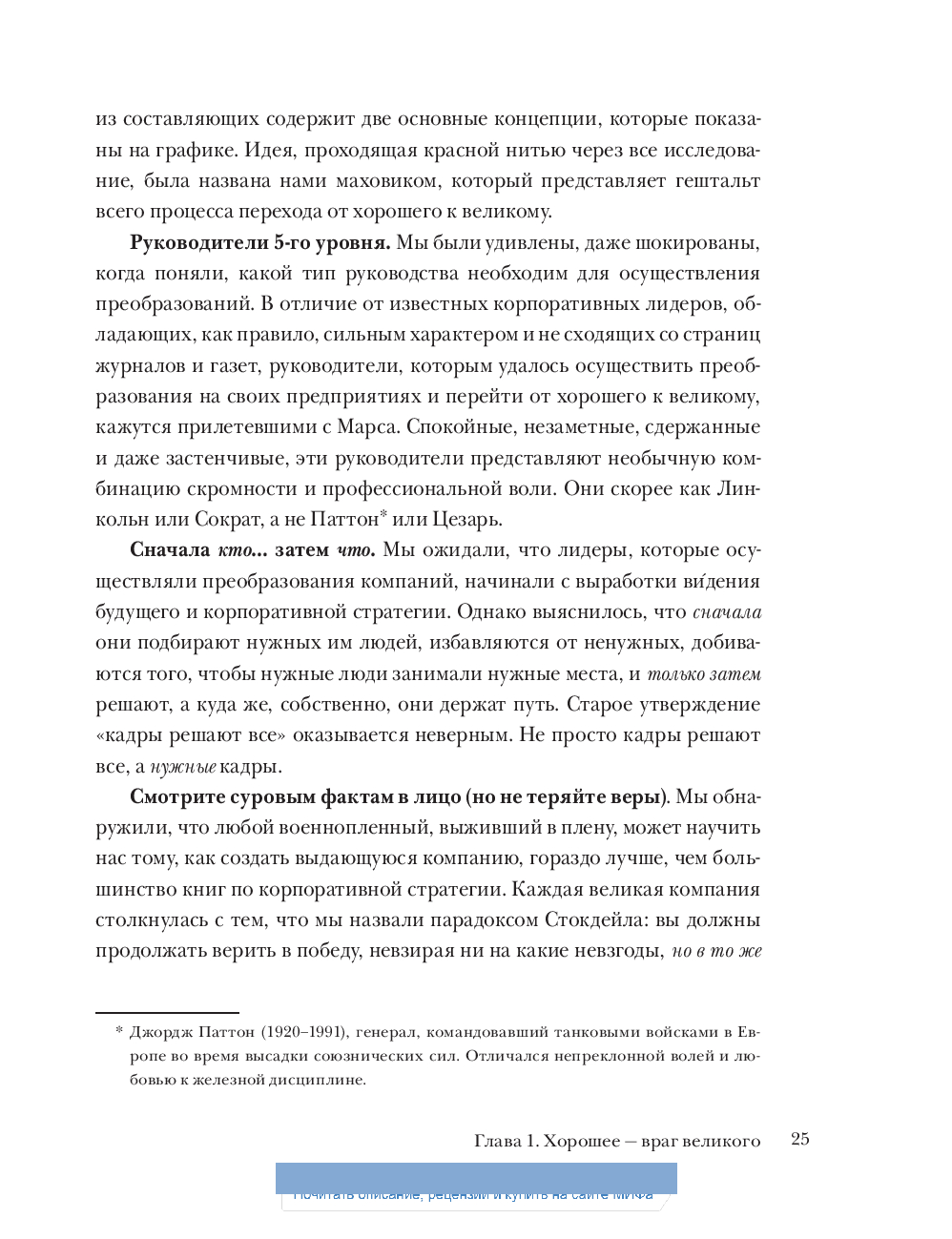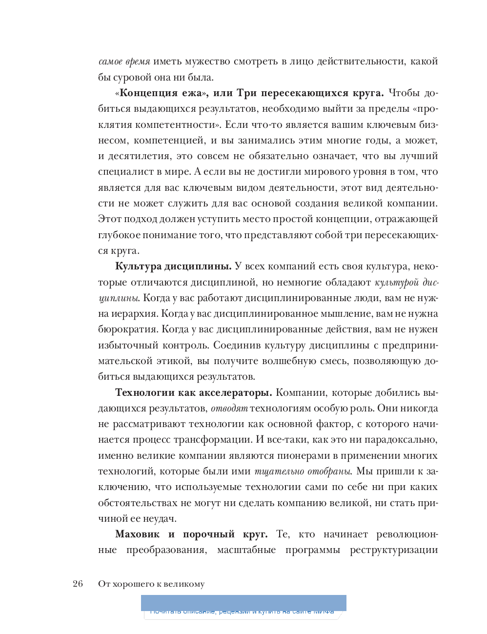 "От хорошего к великому" - это отличный лозунг для любого предпринимателя! Книга-исследование Джима Колллинза даёт огромную почву для размышления, ведь учится нужно у компаний, который не только добились значительных результатов, но удерживают свои лидирующие позиции не один десяток лет. Стоит прочитать!