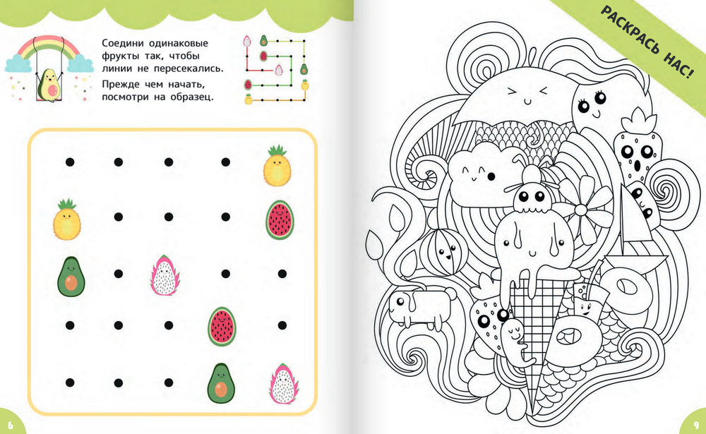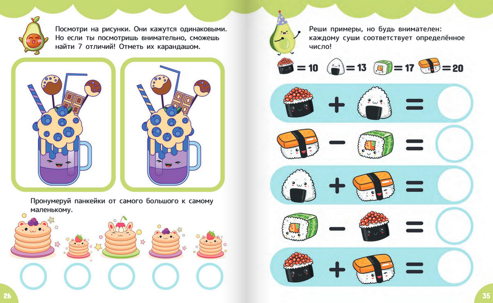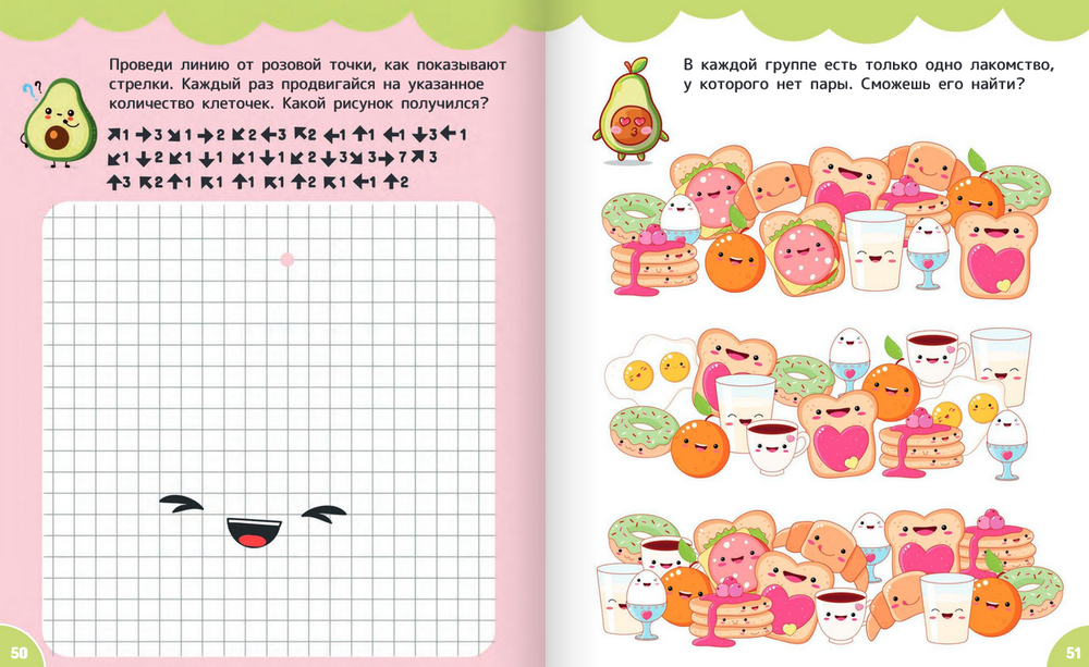 Скорее открывай тетрадь и следуй за авокадо и его кавайными друзьями, чтобы весело провести время в замечательной компании!