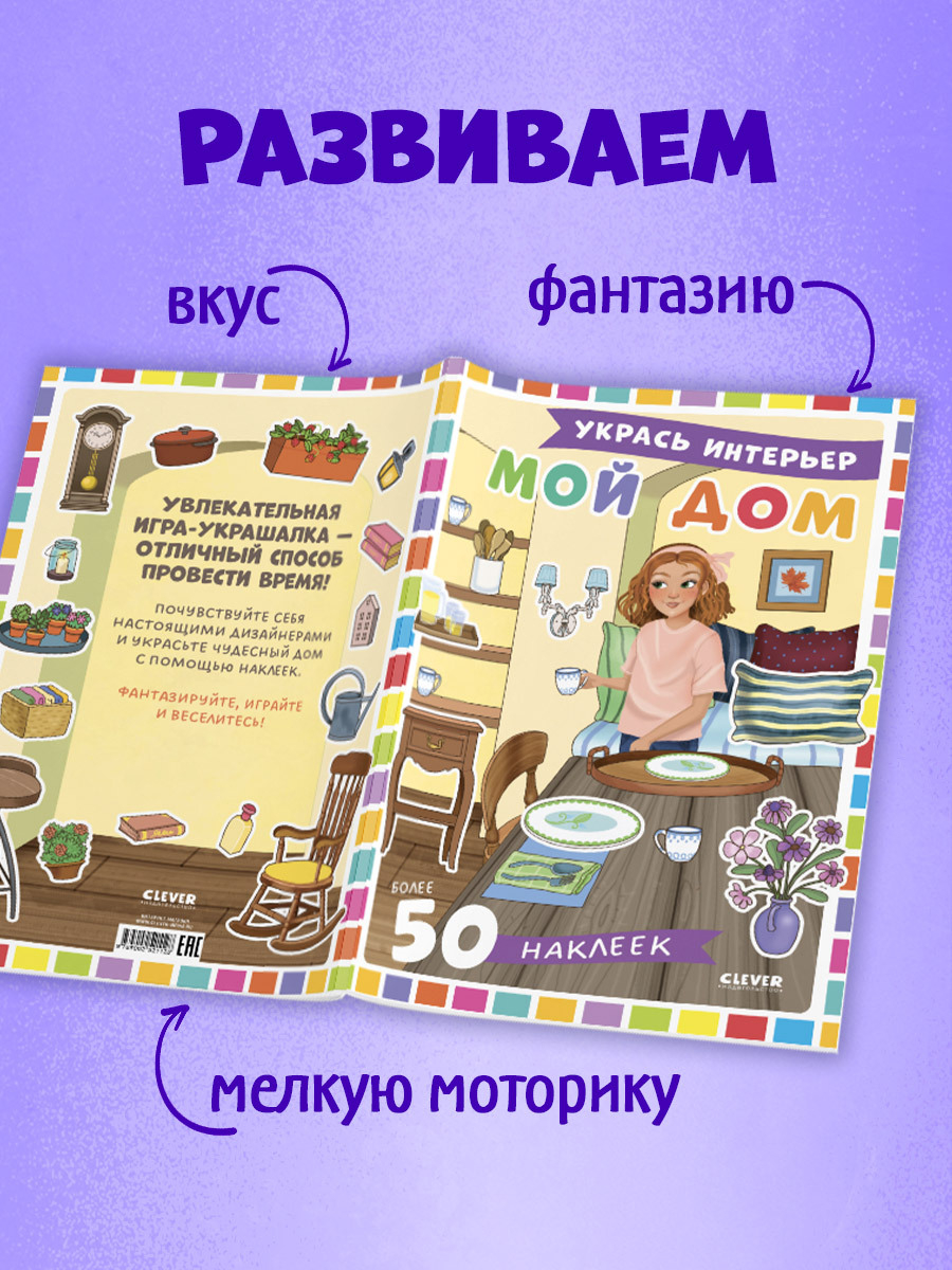Активити с наклейками "Мой дом" поможет весело провести время, создать дом своей мечты, а заодно потренировать мелкую моторику, поработать над развитием художественного вкуса и чувства стиля.