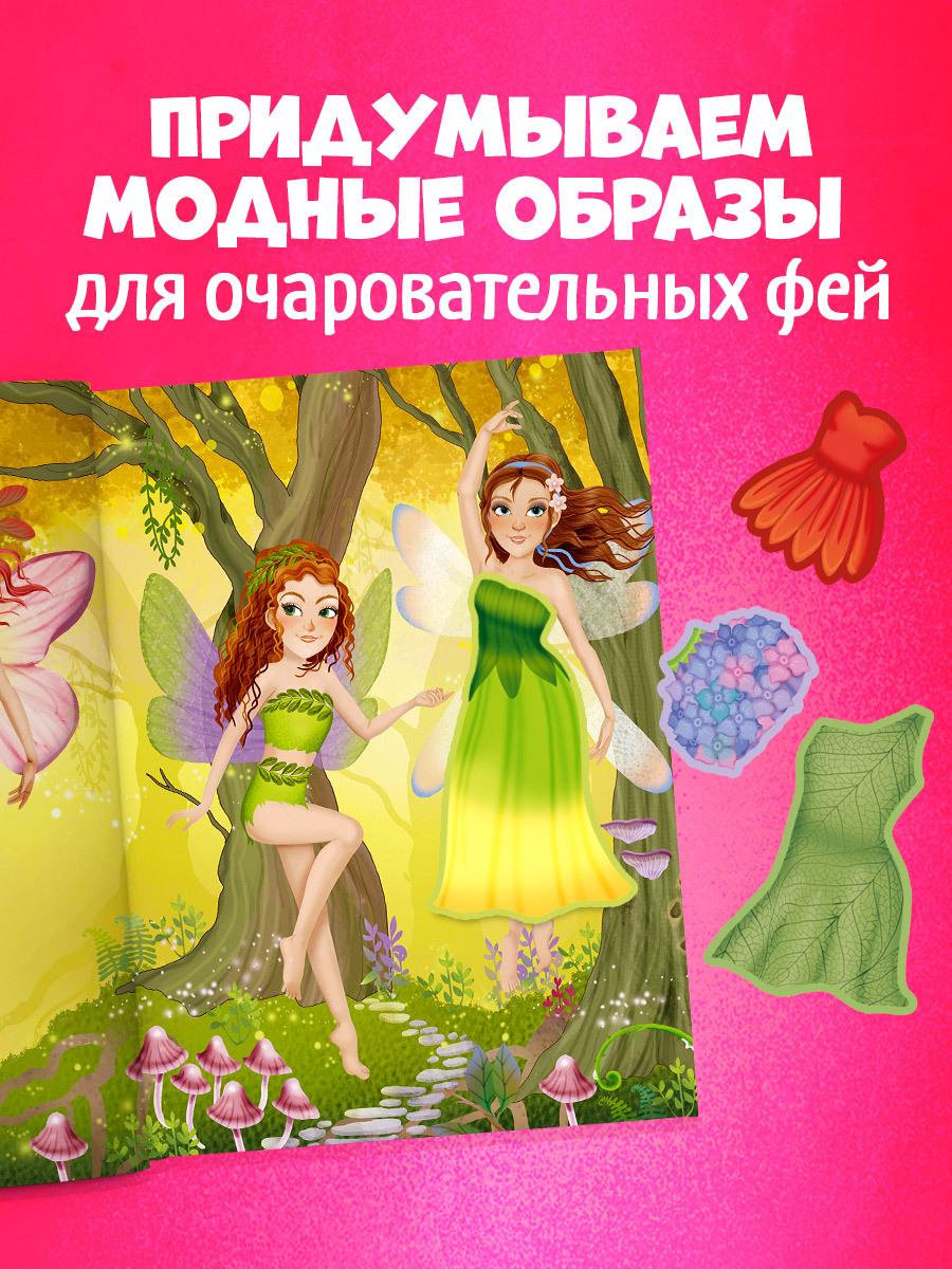 Более 50 стикеров позволят юному кутюрье придумывать наряды и одевать милых подружек-феечек прямо в книге. Сочините удивительную историю, устройте модную лесную вечеринку, создайте образ для каждой феечки с помощью наклеек.