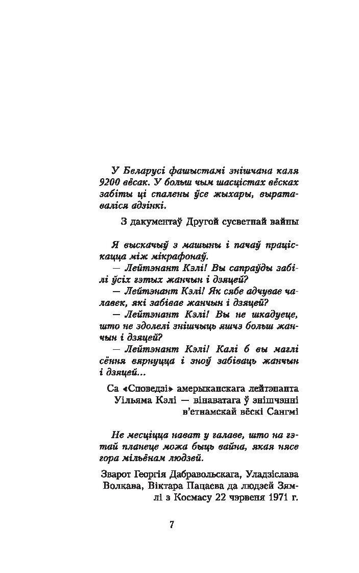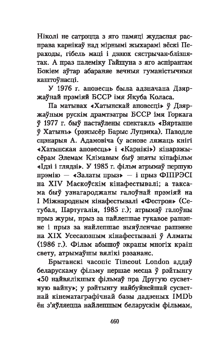 У "Хатынскай аповесці" (1970) беларускі празаік, здаецца, свядома ўступае ў адкрытае спаборніцтва з гістарычнымі дакументамі і ўспамінамі відавочцаў і ахвяраў страшных ваенных злачынстваў, дэманструючы здольнасць літаратурнага слова перадаваць эмацыянальны напал падзей часу вайны, невыносны боль беларускіх жанчын і дзяцей, якія перажылі ўласную пагібель і намагаюцца адшукаць словы, адэкватныя перажытаму імі.