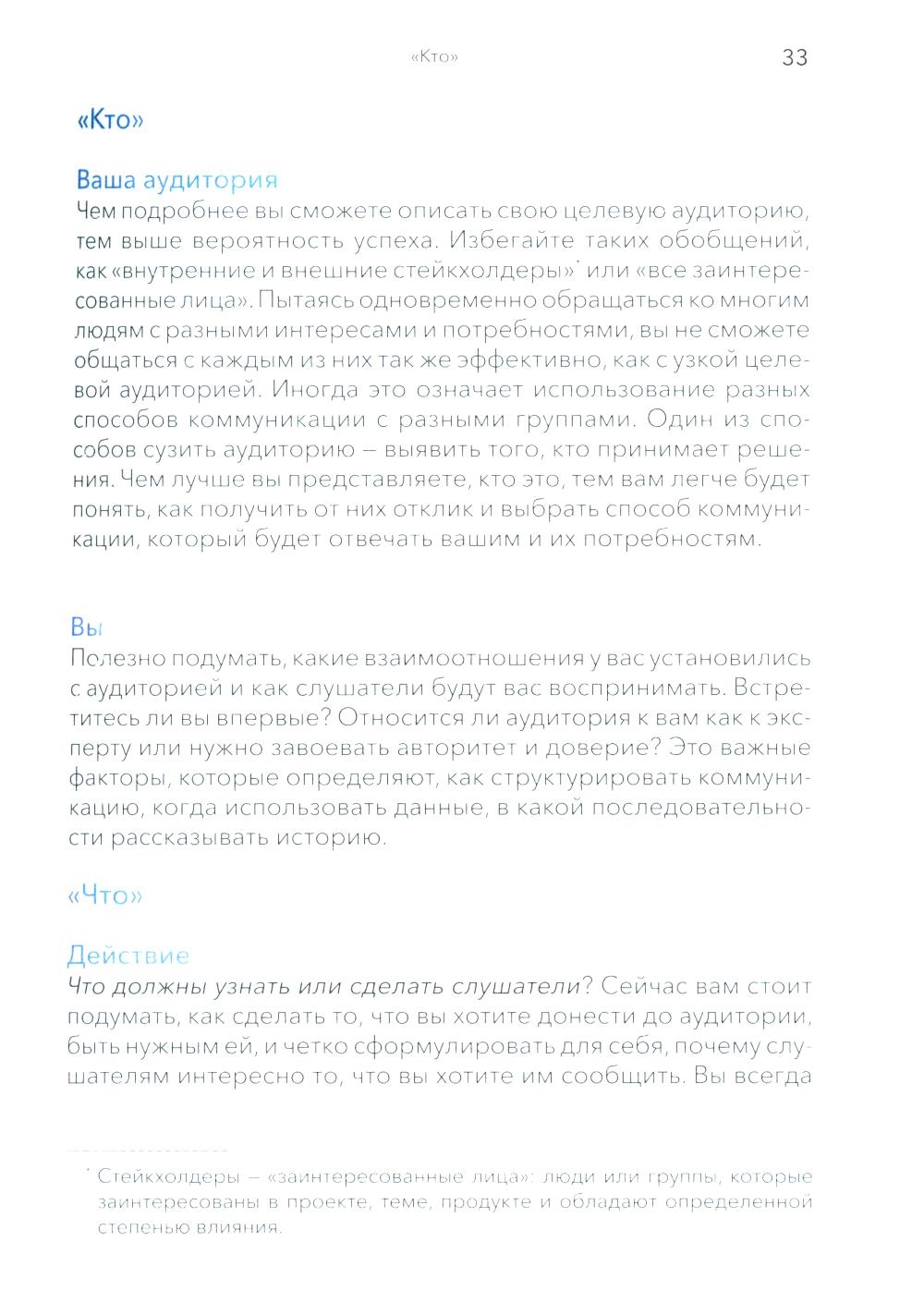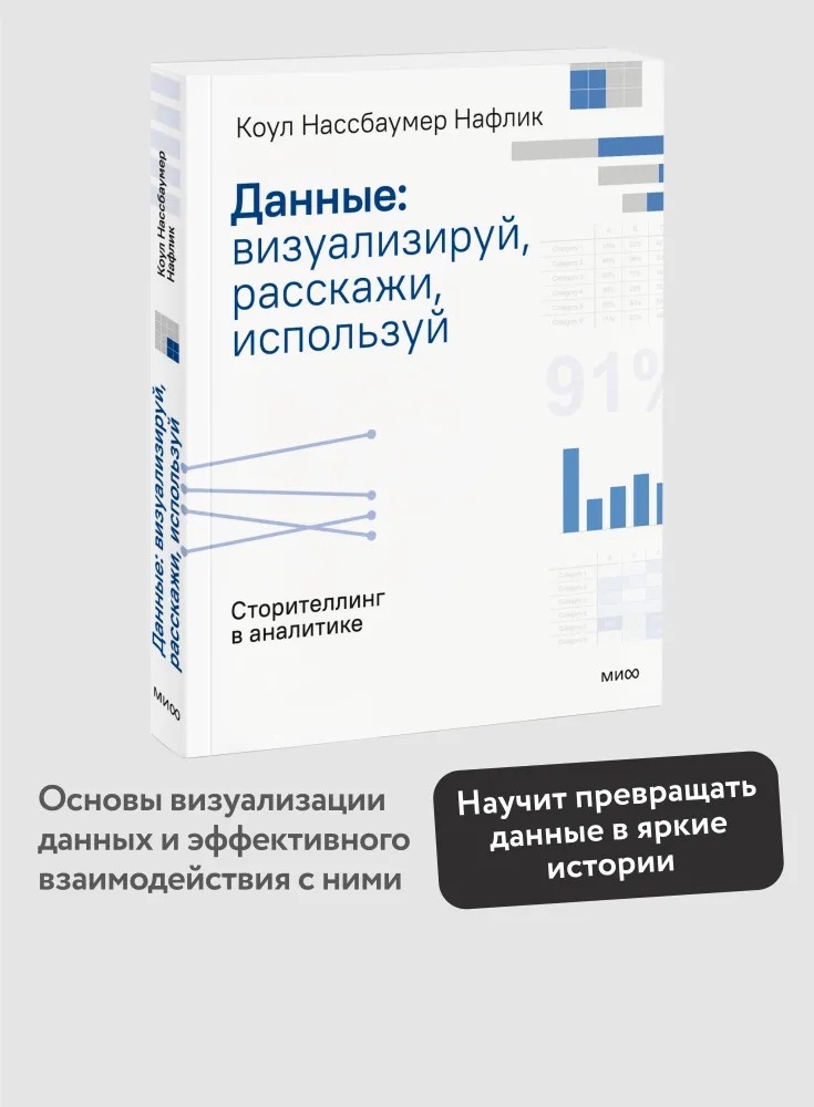 Книга учит основам визуализации данных и тому, как эффективно взаимодействовать с ними. Вы откроете для себя силу повествования и способ сделать данные ключевым моментом в вашей истории. Уроки основаны на теории и понятны благодаря многочисленным примерам из реальной жизни; их можно без труда применить в своей презентации.