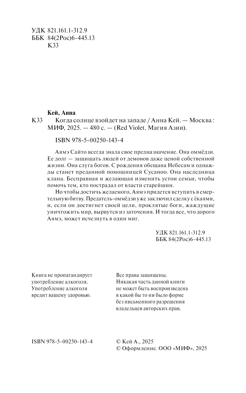 Но чтобы достичь желаемого, Аямэ придется вступить в смертельную битву. Предатель-оммёдзи уже заключил сделку с ёкаями, и, если он достигнет своей цели, проклятые боги, жаждущие уничтожить мир, вырвутся из заточения. И тогда все, что дорого Аямэ, может исчезнуть в один миг.
